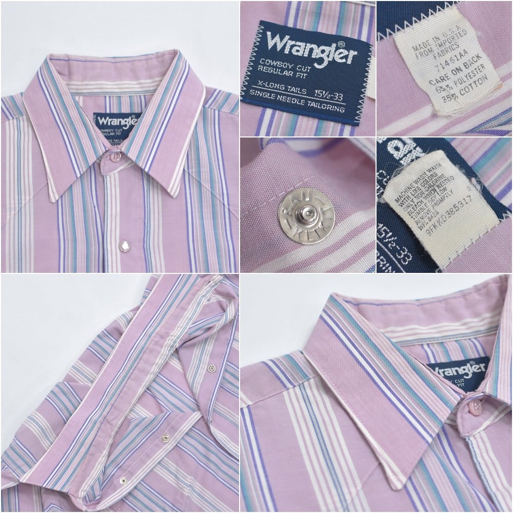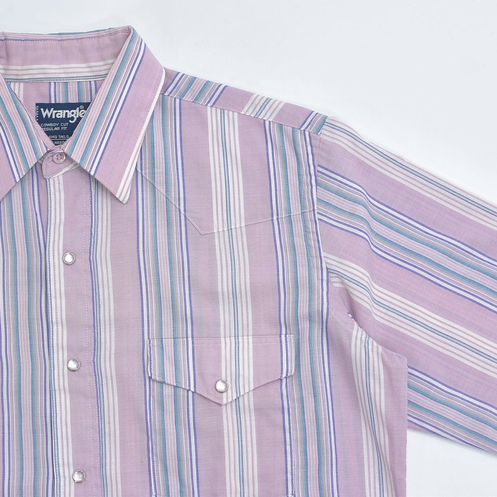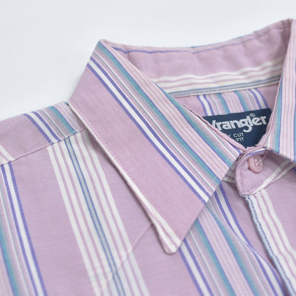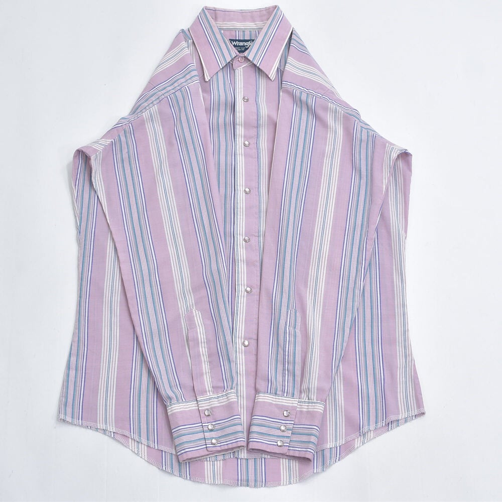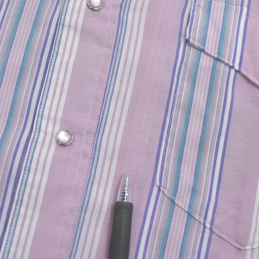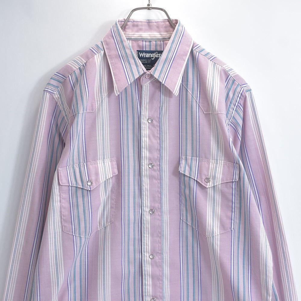 90s USA製 Wrangler ラングラー ペールトーン ストライプ柄 ウエスタンシャツ パールボタン パステル ヴィンテージ ビンテージ アメリカ古着 メンズL相当