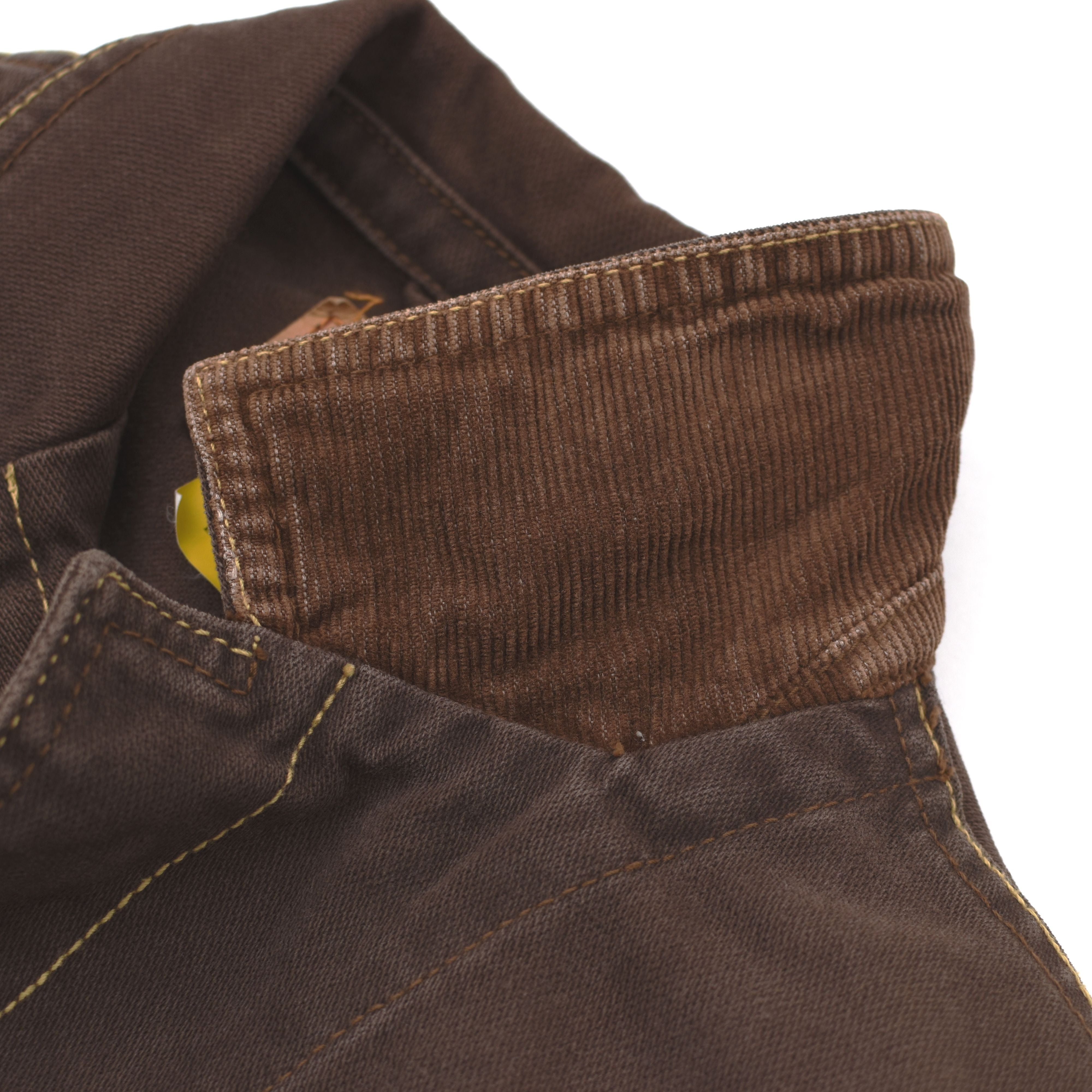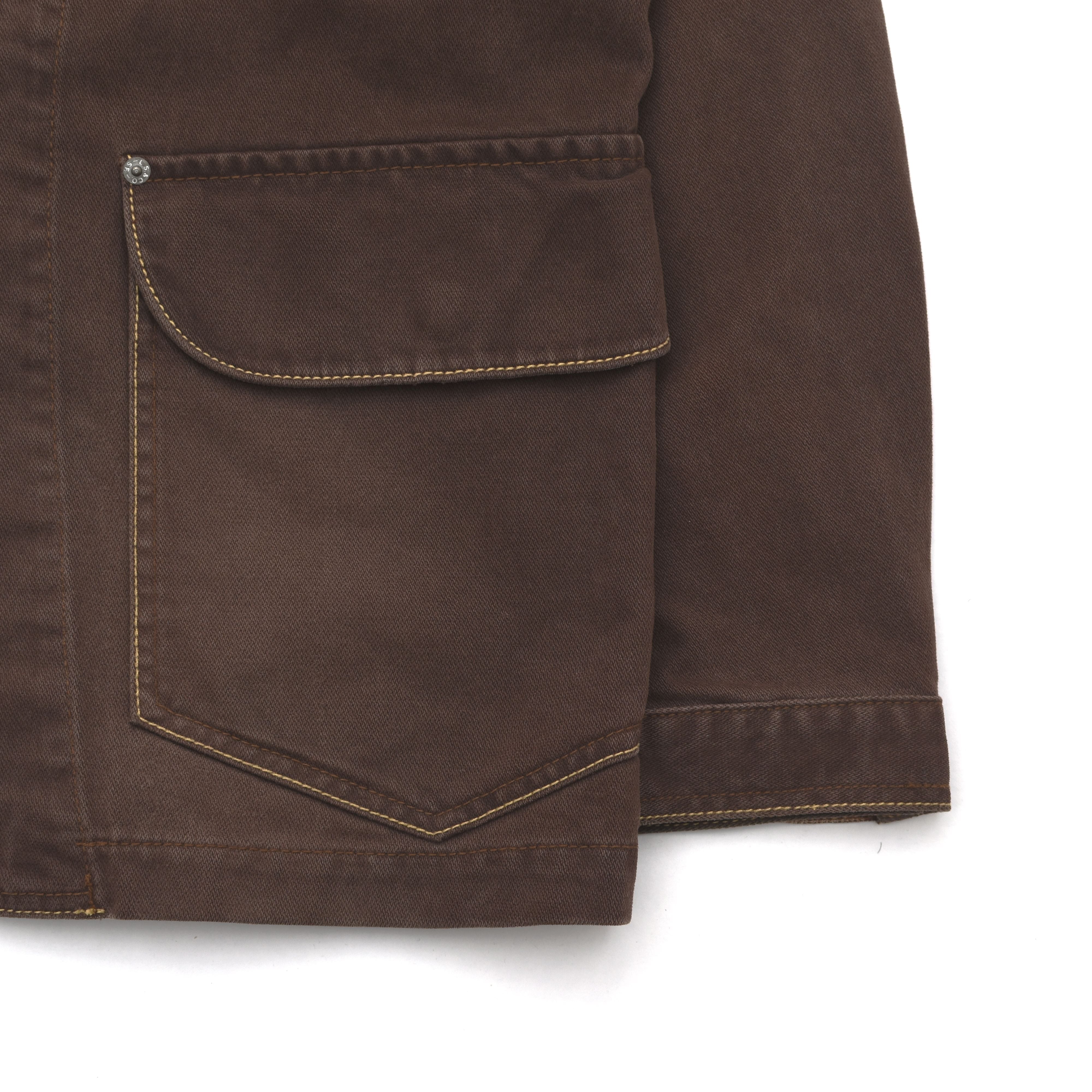 ブラウンのデニム生地にヴィンテージ 加工を施した一枚