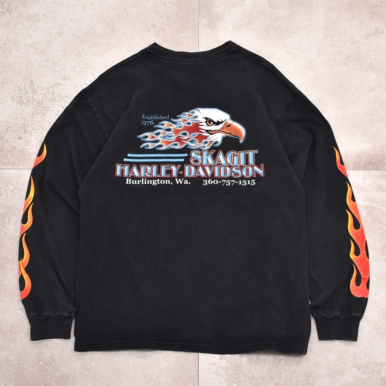 00's Harley-Davidson fire pattern LS T-shirt Made in USA