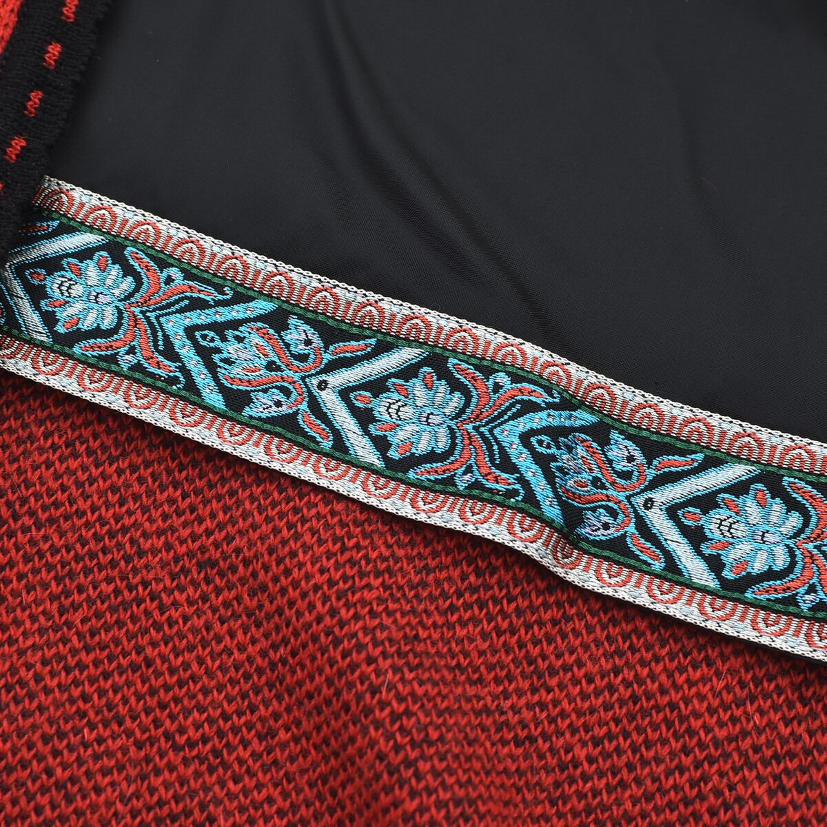 レディース 9号 M相当 ジャパン ラグジュアリー ブランド イタリヤ モノグラム ジャガード デザイン ニット コート アンゴラ カシミヤ ブレンド レッド系
