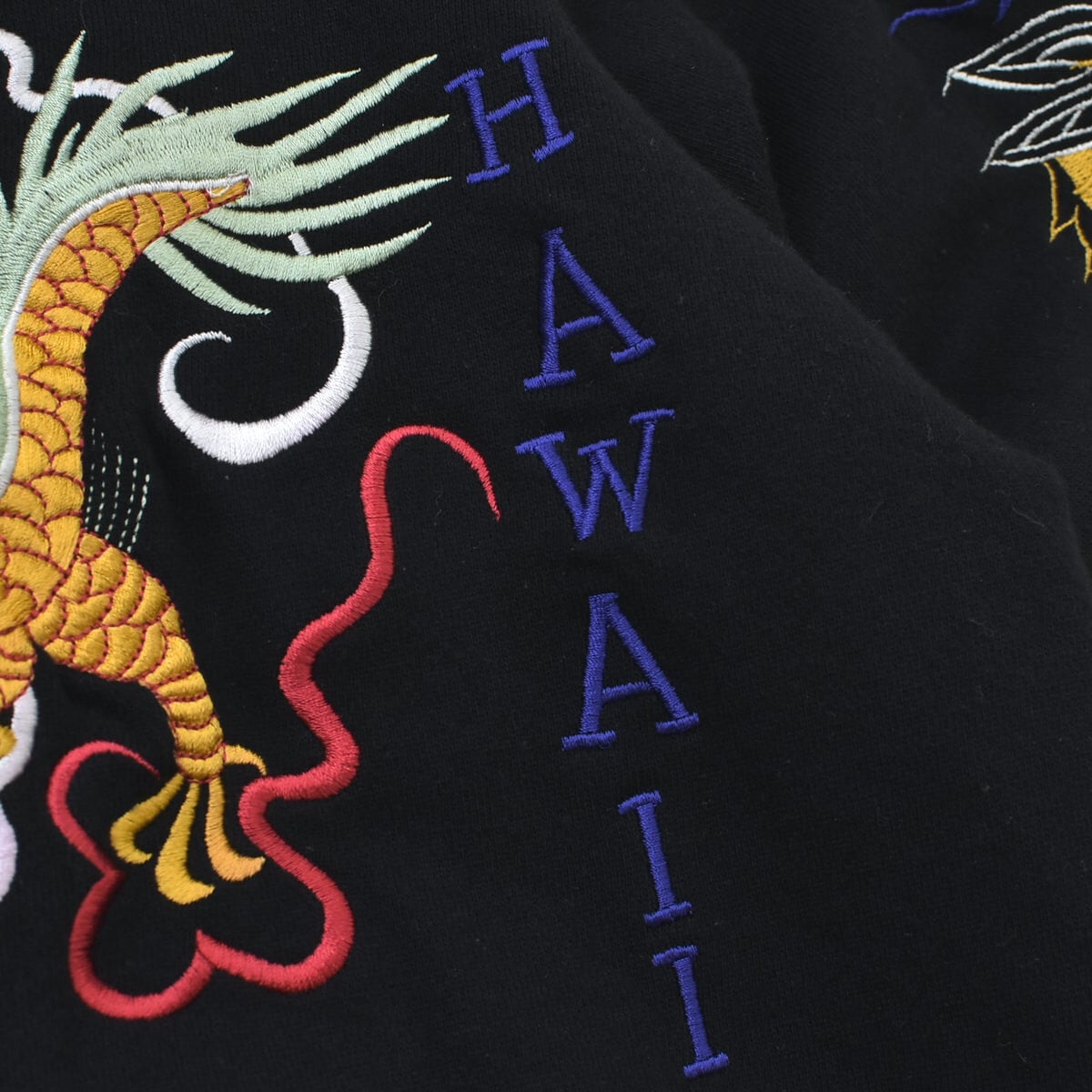 ハワイ、香港、ジャパンの国名など、スカジャンの要素はしっかりと押さえた一枚