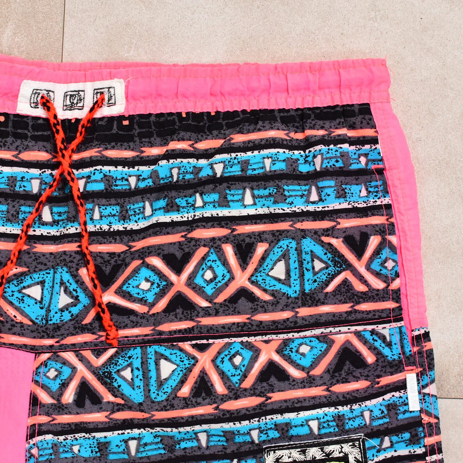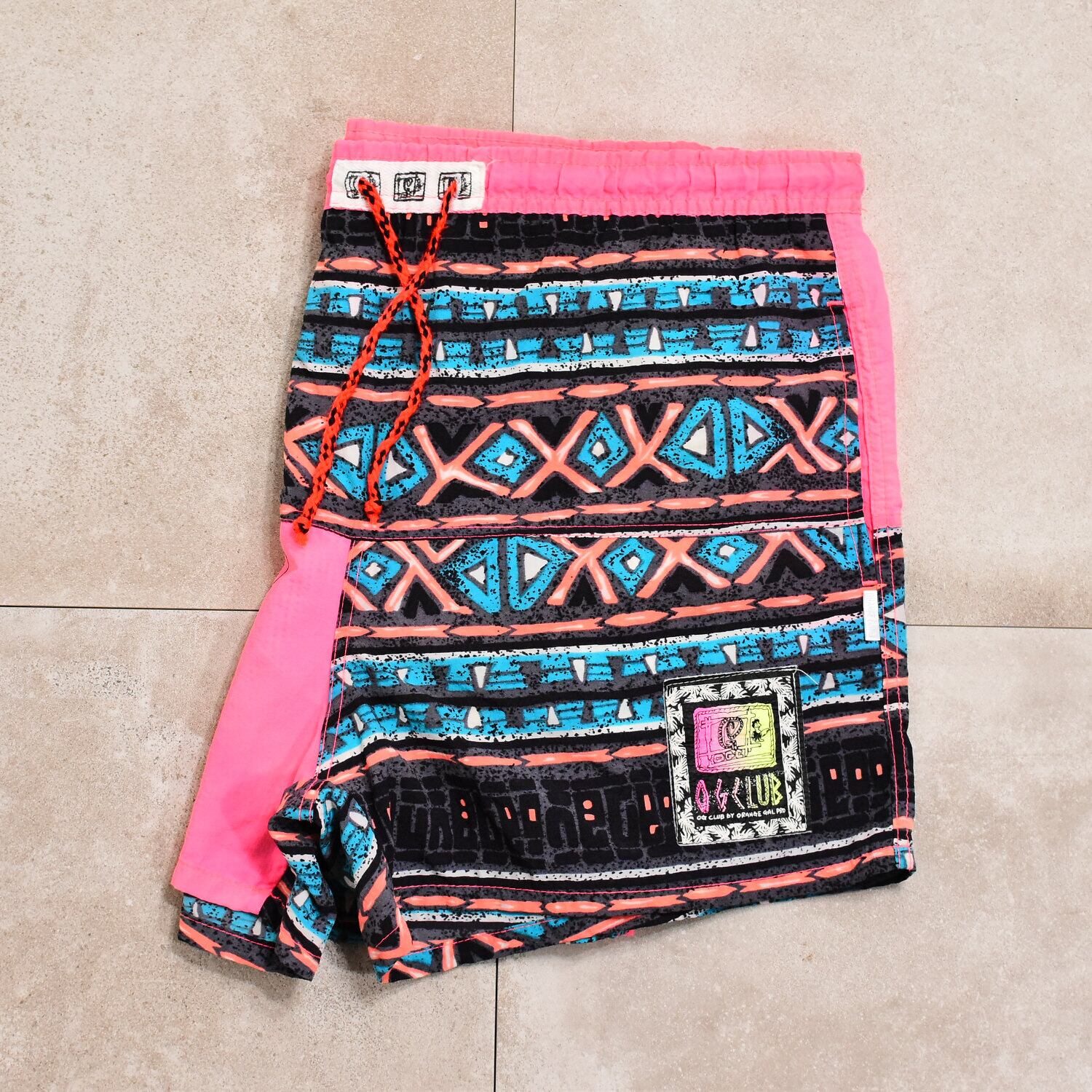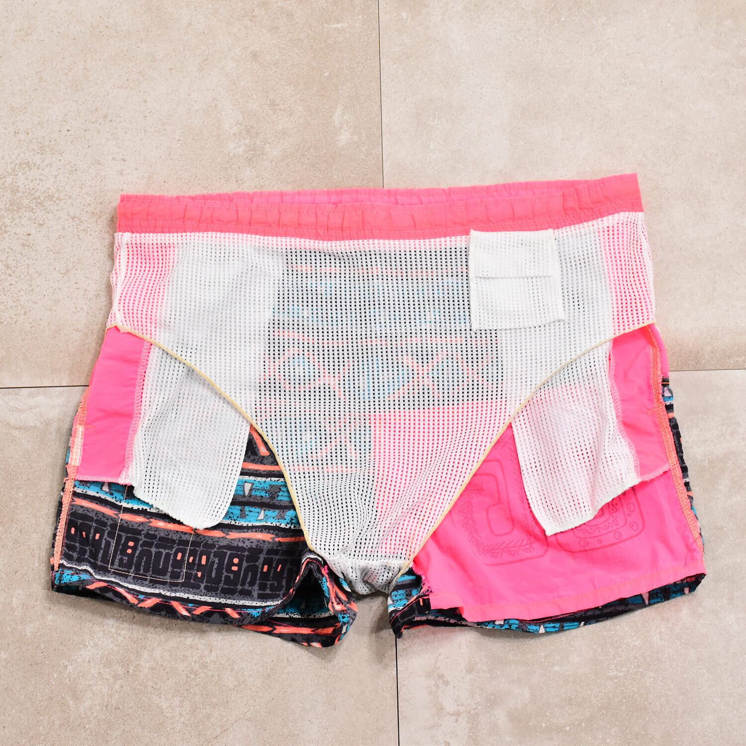 メンズ Lサイズ 80s オレンジ・ギャル ポリネシアン柄 総柄 スイムショーツ ヴィンテージ サーフ 水着 サポーター付き 80s ORANGE GAL swim shorts