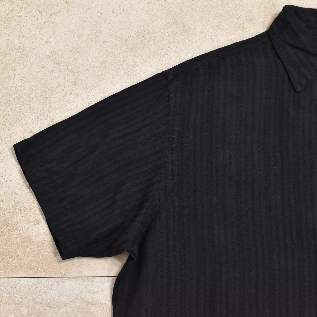 メンズ Lサイズ 00s ペリー・エリス ジャガードストライプ リネンブレンド プルオーバーシャツ 半袖 レーヨン ブラック アメリカ古着 00s PERRY ELLIS stripe pullover shirt