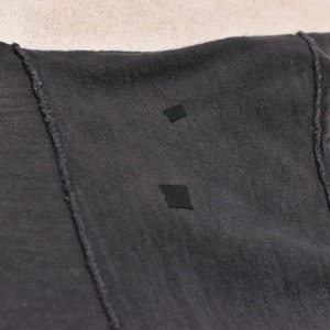 画像の様に、右袖と左脇の小穴を裏側からパッチリペアした跡や、色褪せ、経年によるヨレなどありますが、目立つ汚れ、その他ダメージは無く、古着に慣れている方であれば問題無く着用して頂ける一枚です