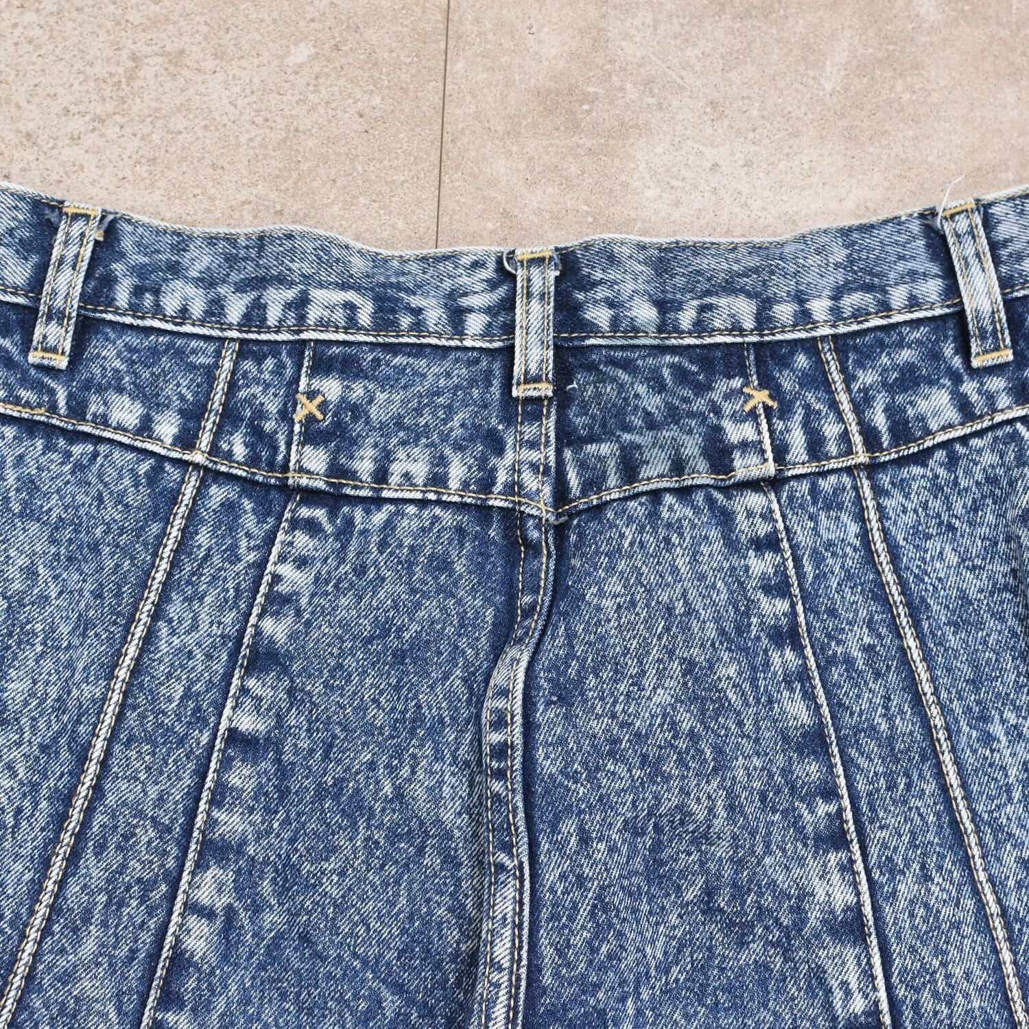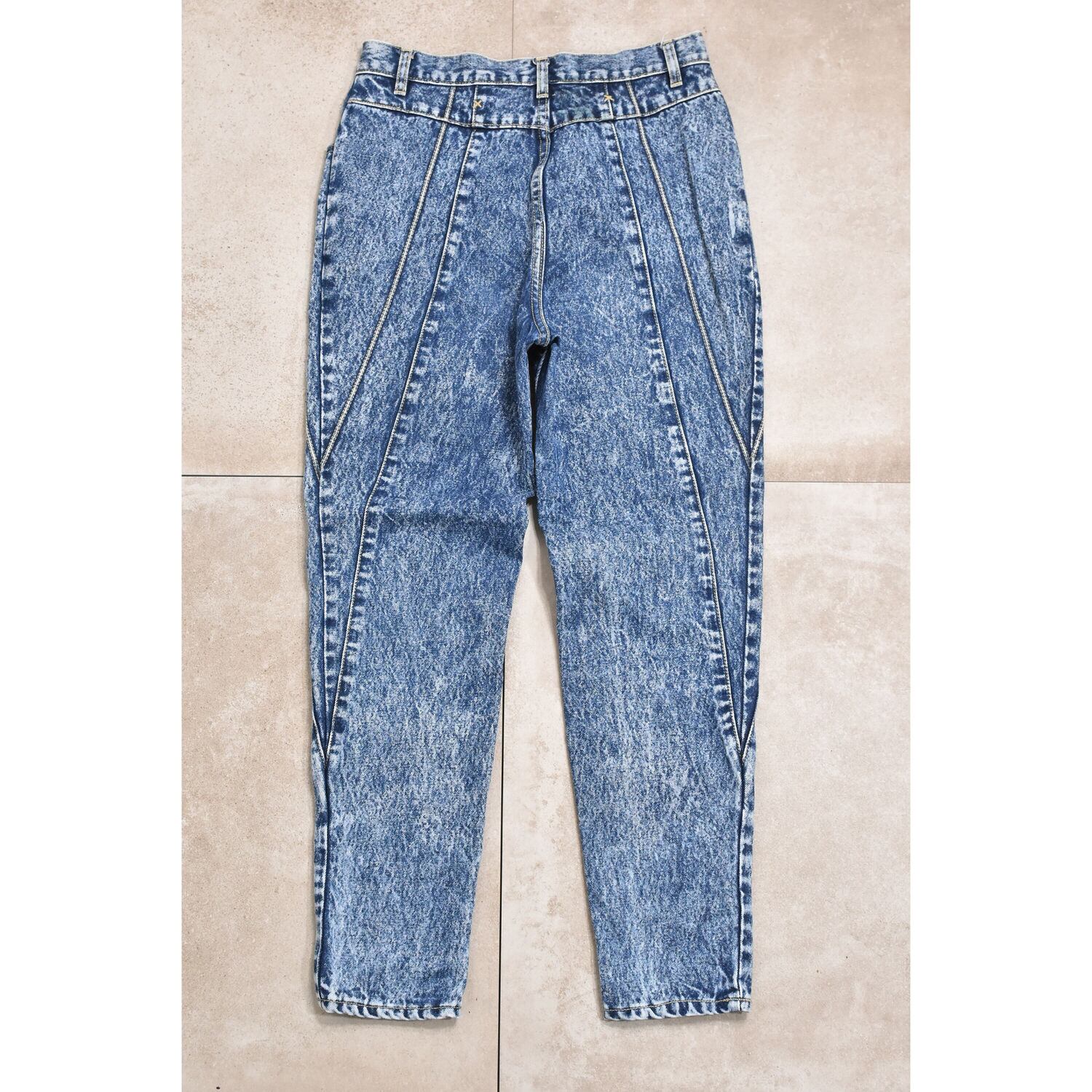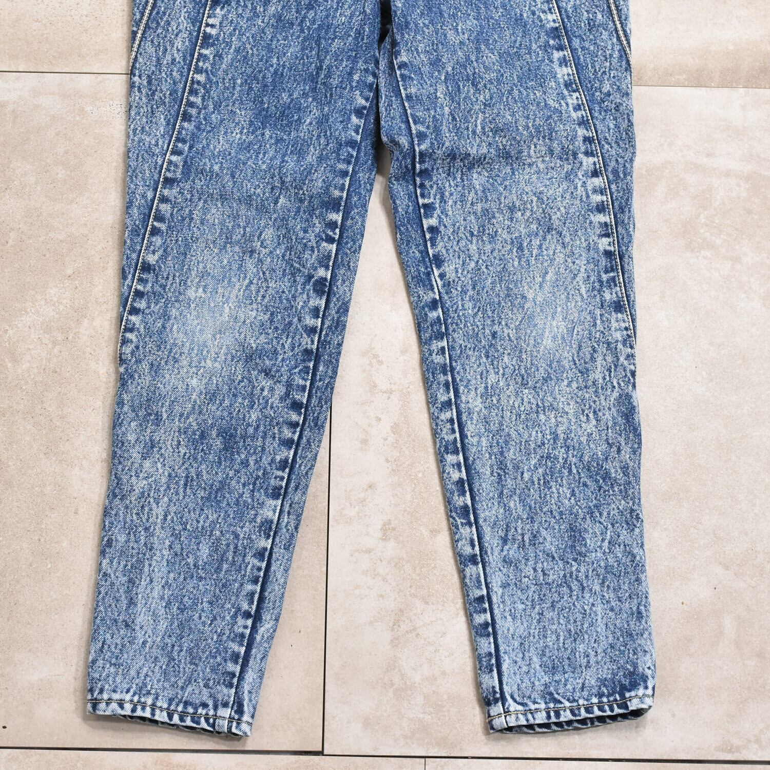 レディース W74cm ケミカルウォッシュ ライン 切替 デザイン デニム テーパード パンツ 古着 ジーパン ジーンズ Chemical wash denim tapered pants