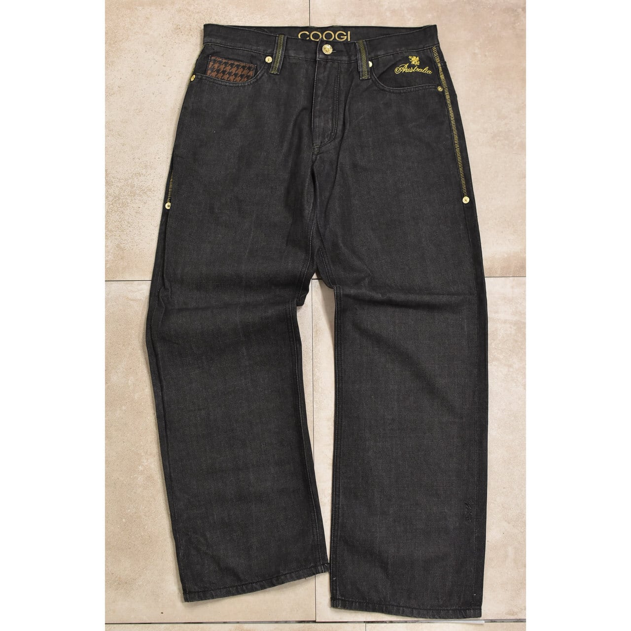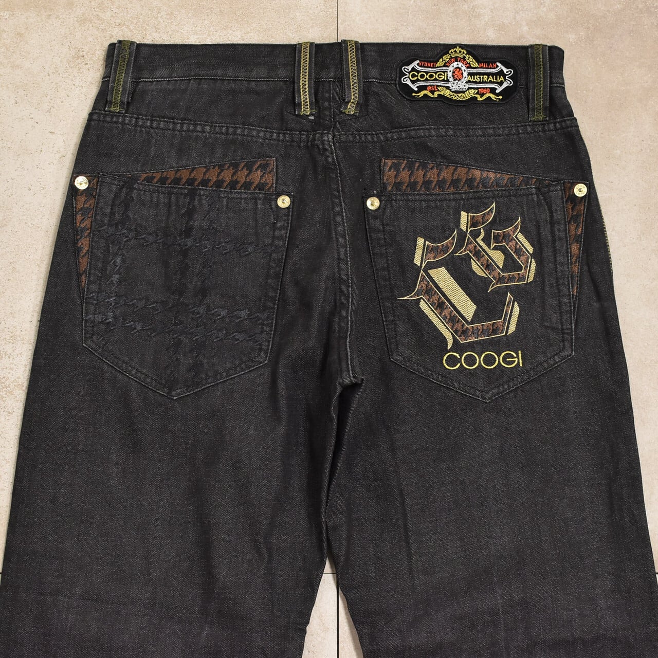メンズ W34インチ 90s〜 クージー 刺繍 デザイン ワイドシルエット ブラック デニム パンツ アメリカ古着 ノートリアスBIG 90s〜COOGI wide denim pants