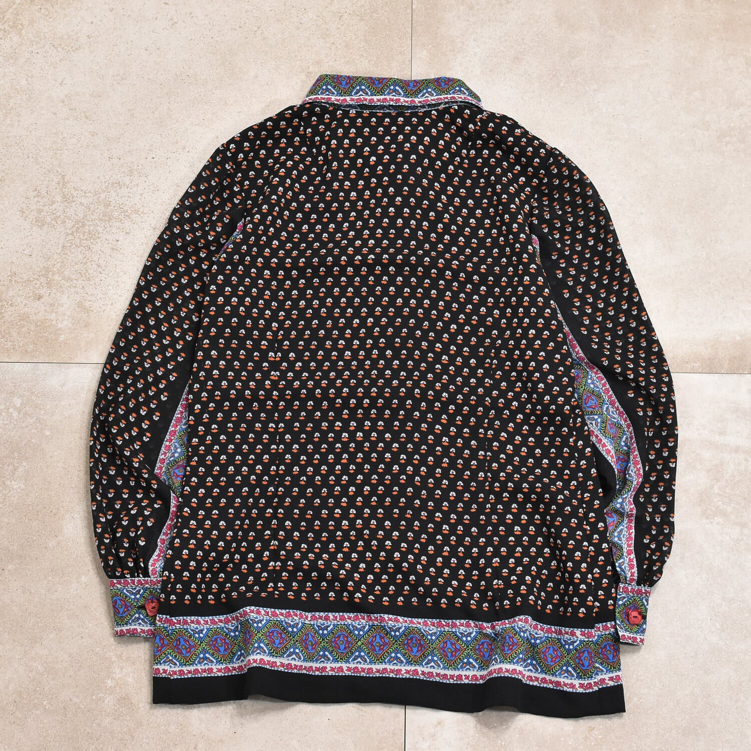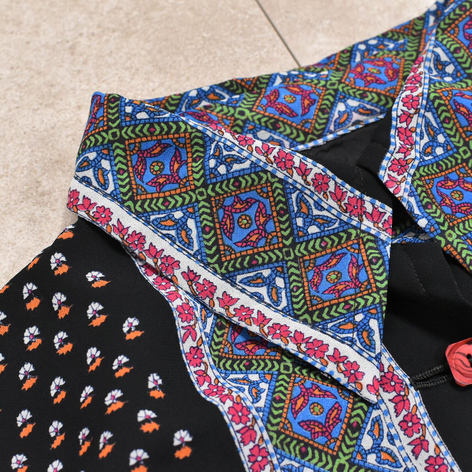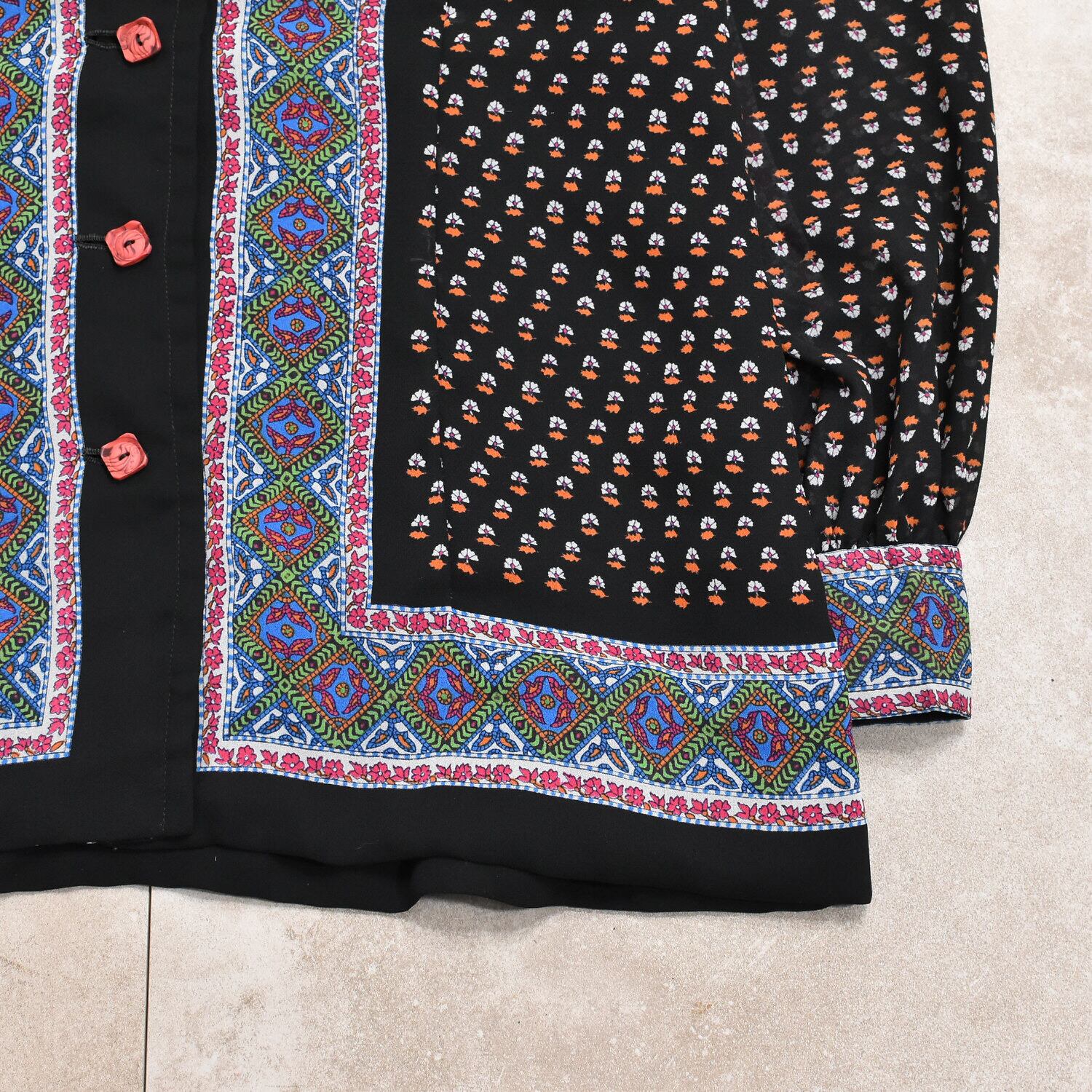 レディース M相当 エスニック柄 パネルパターン 総柄 ジョーゼット シフォン シャツ ブラウス ヴィンテージ Botanical panel pattern georgette shirt