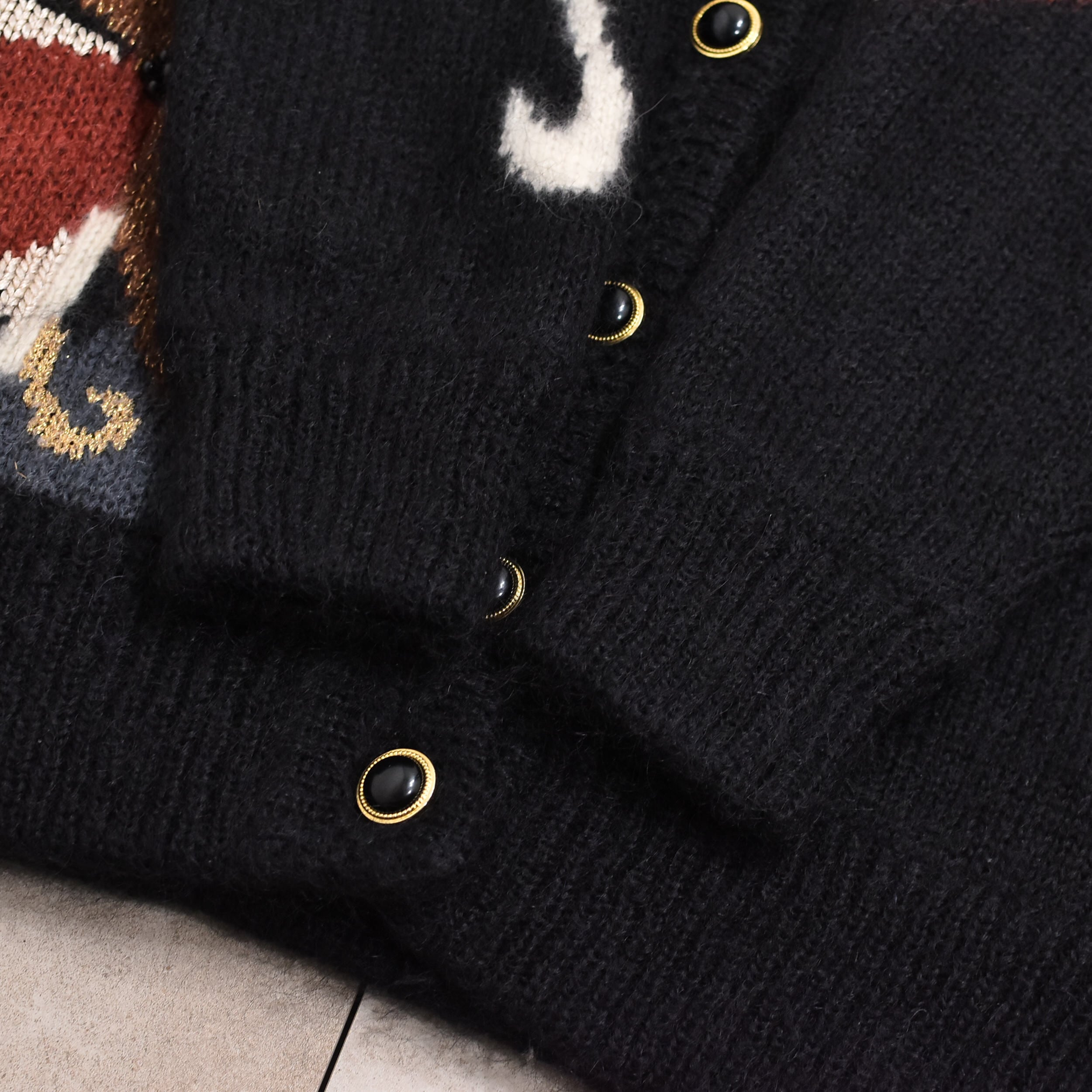レディース L相当 80〜90s フラワージャガード デザイン レトロ ニットカーディガン 裏地付 ヴィンテージ 80〜90s Jp vtg design cardigan