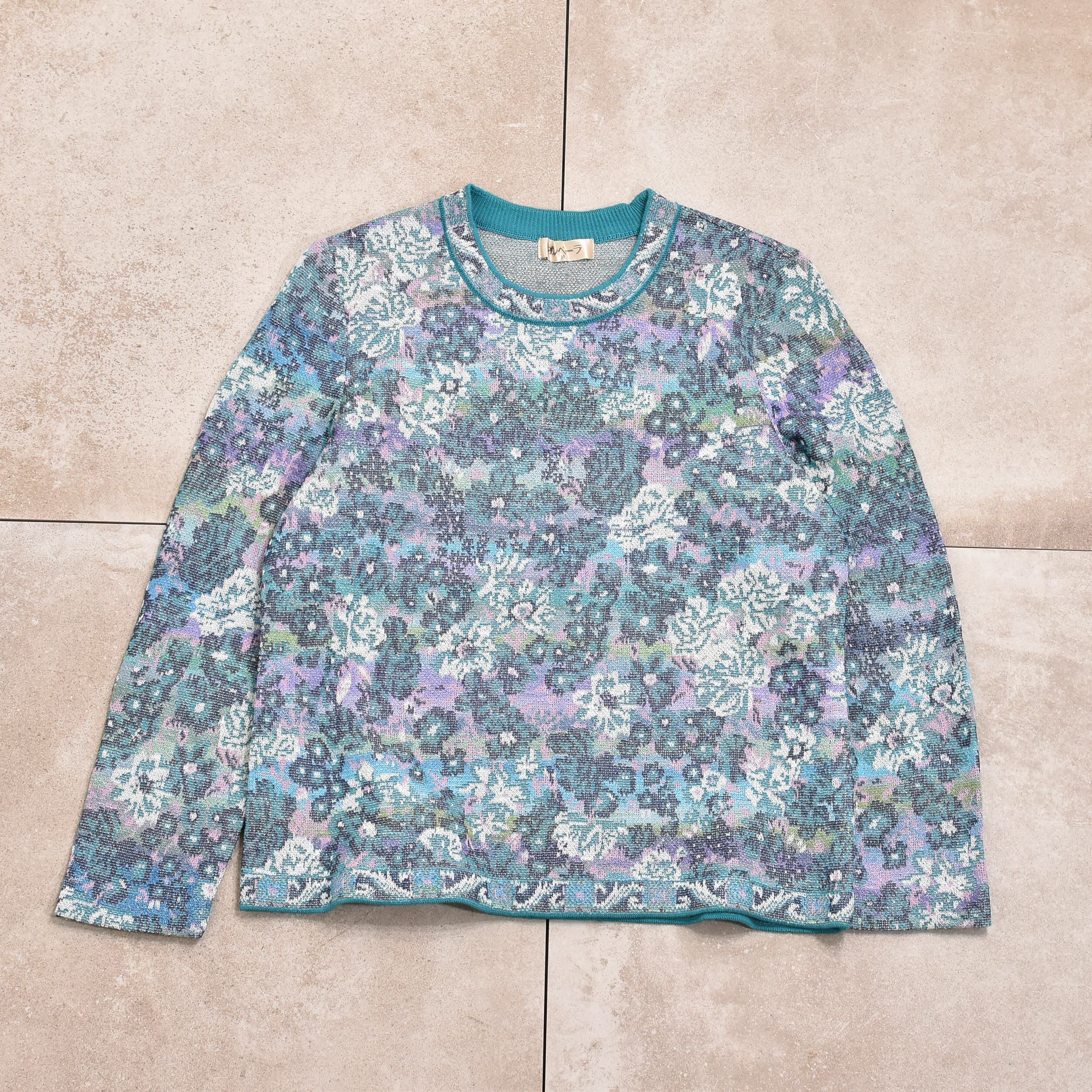 レディース Mサイズ オルベーラ ジャガード フラワーデザイン 総柄 ロングスリーブ ニットソー 古着 日本製 ジャパンブランド Jp brand オルベーラ jacquard pullover knit