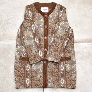 レディース ジャパン ヴィンテージ デザイン ニット カーディガン エンボスジャガード アンティーク フラワー ブラウン系 Mサイズ