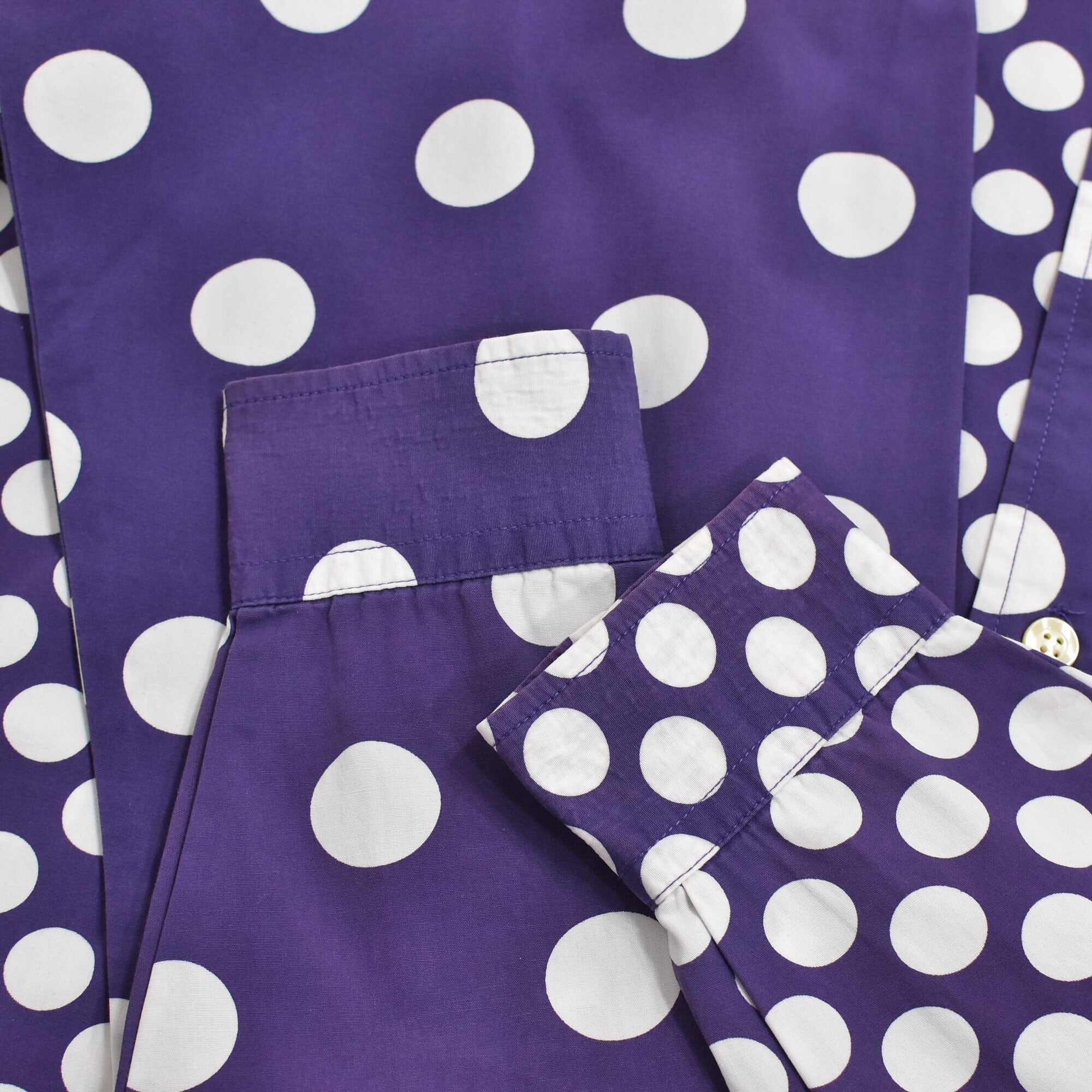 間隔の違う2種類のコインドットを互い違いに繋ぎ合わせたクレイジーパターンシャツ