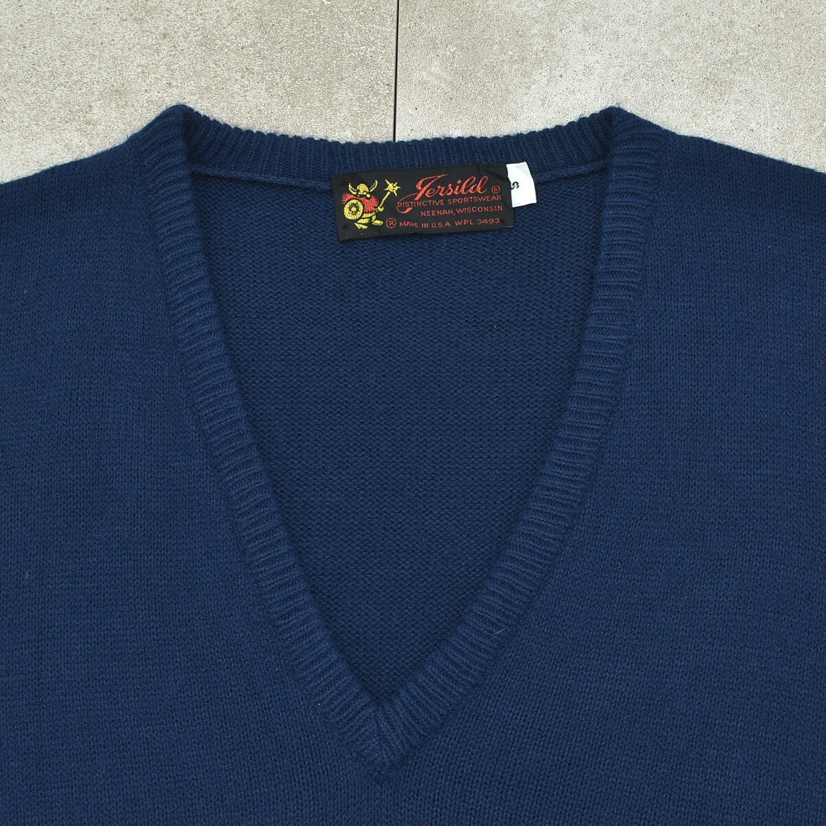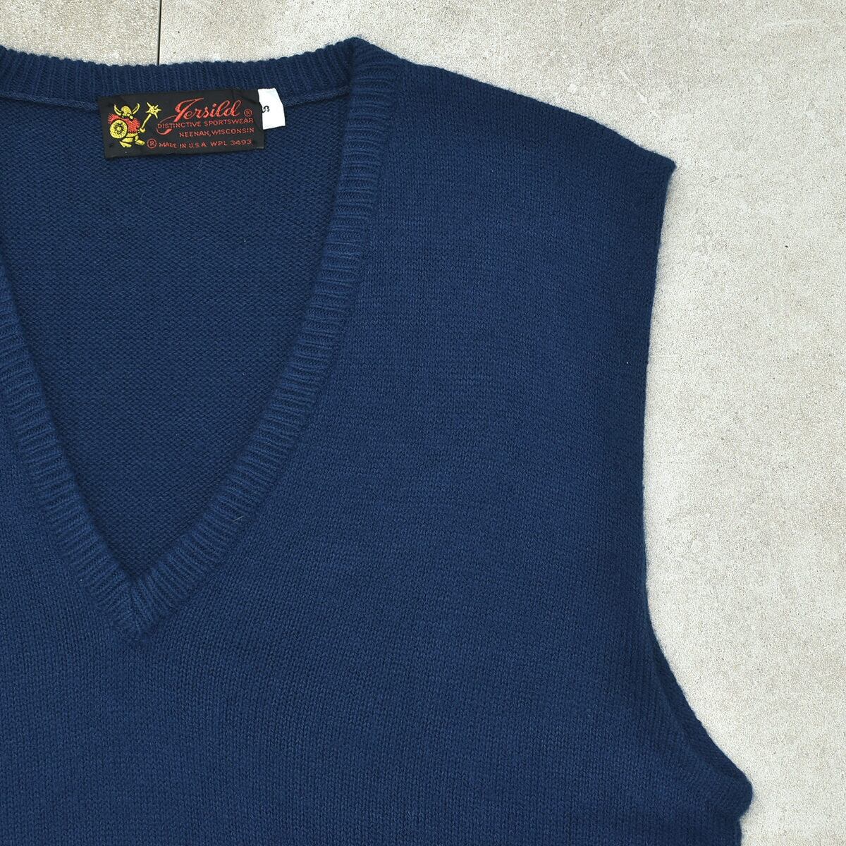 メンズ M相当 70s ヴィンテージ アメリカ製 アクリル ウール ニット ベスト セーター ジレ ネイビー系