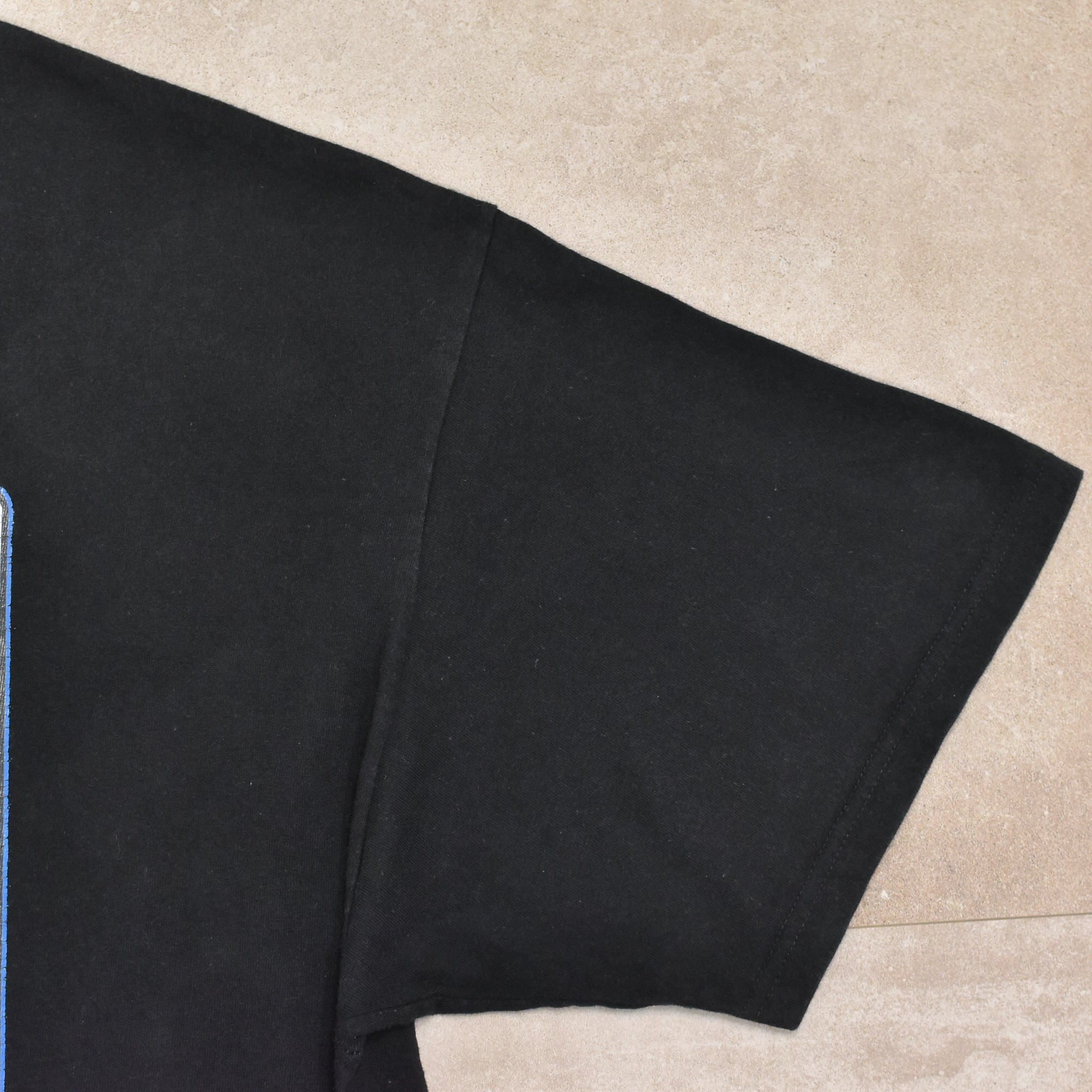 使用感による色褪せや、やや毛羽立ち、アイロンプリントのひび割れ、後ろ身頃の右裾付近の小穴などありますが、目立つ汚れ、ダメージは見たらず、古着に慣れている方であれば問題ないかと思います