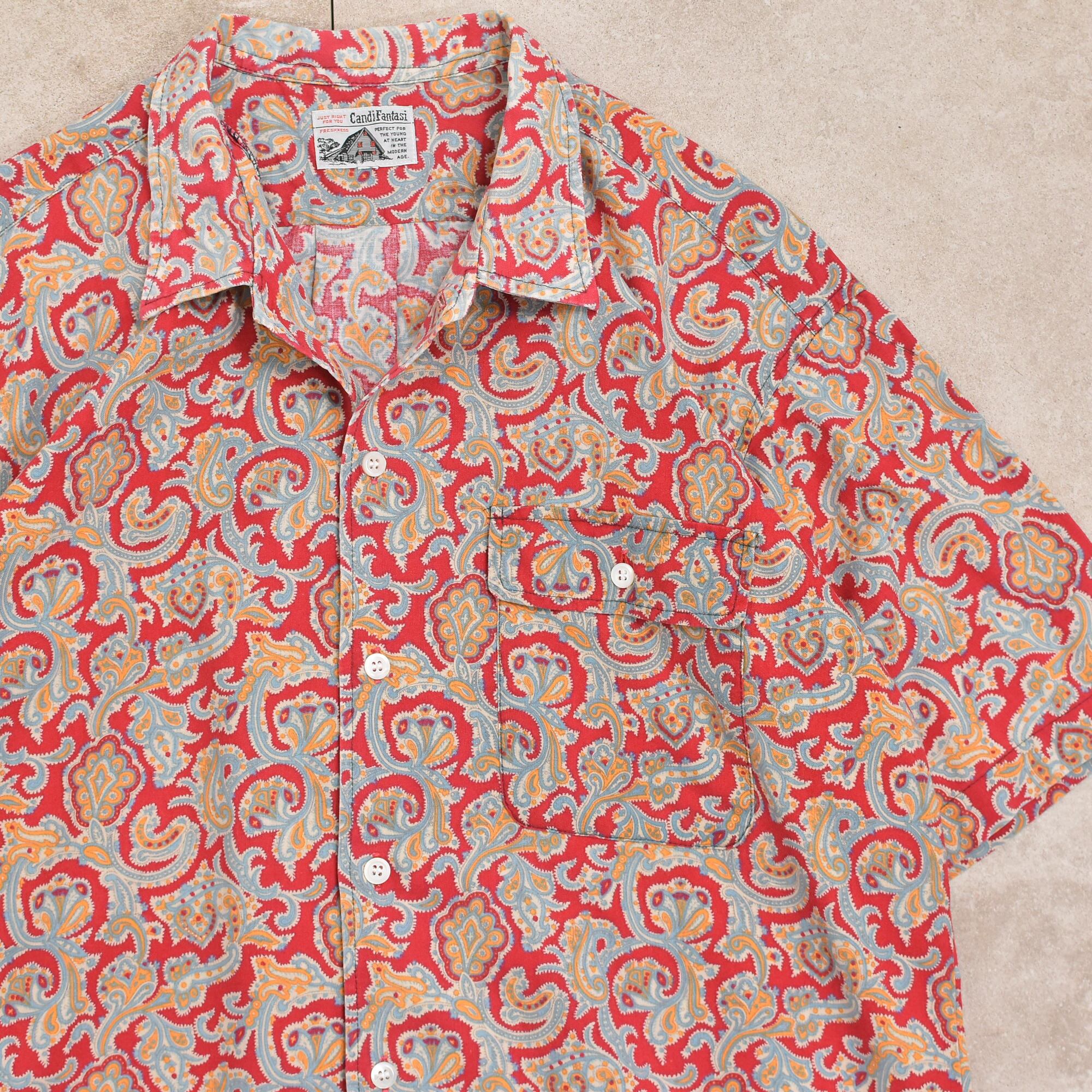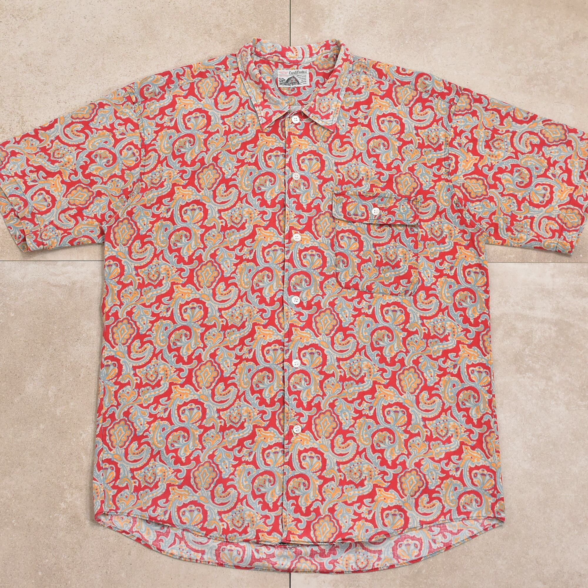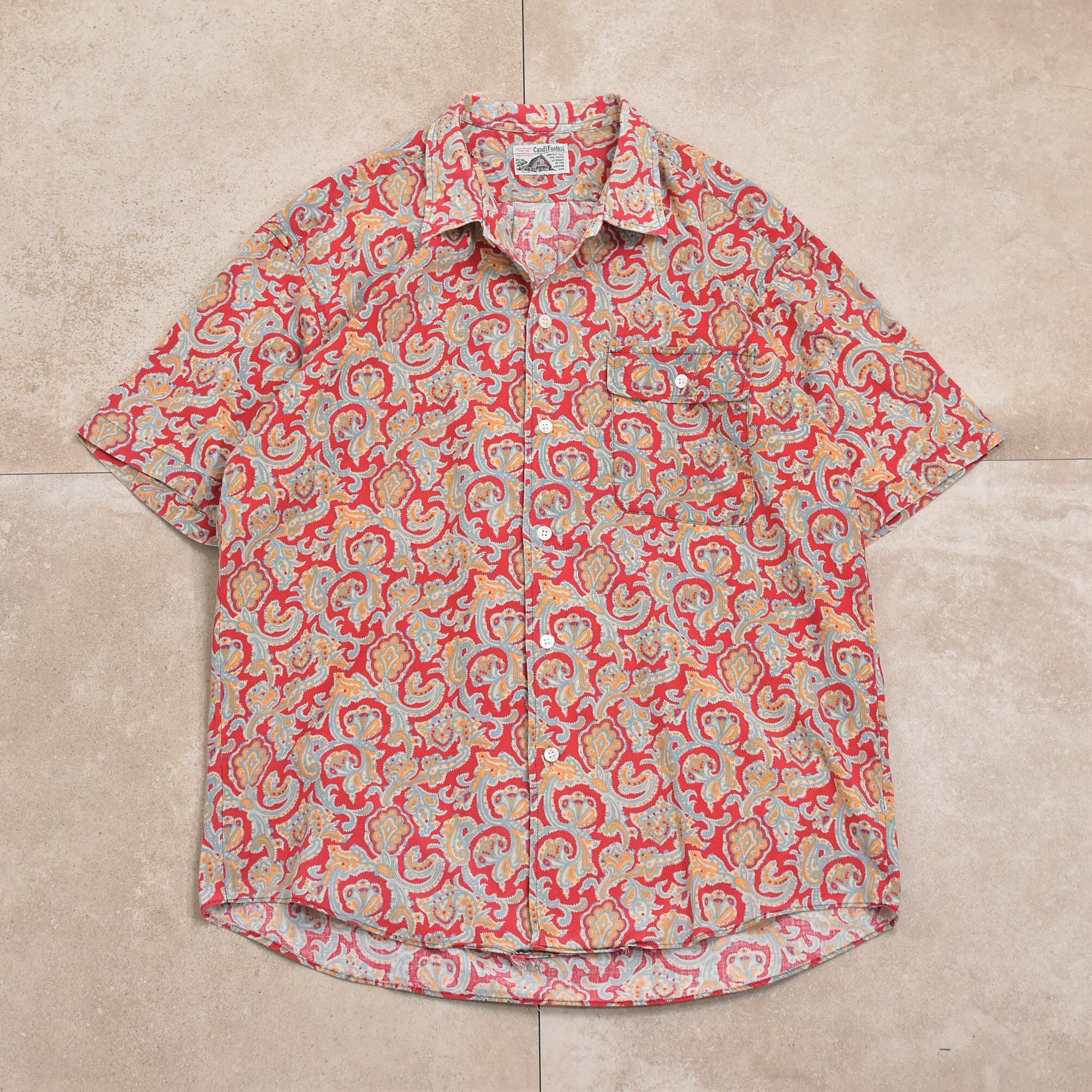 メンズ L相当 90s〜 CandiFantasi ペイズリー柄 総柄 半袖シャツ ヴィンテージ ボタニカル 90s Candi Fantasi paisley pattern SS shirt