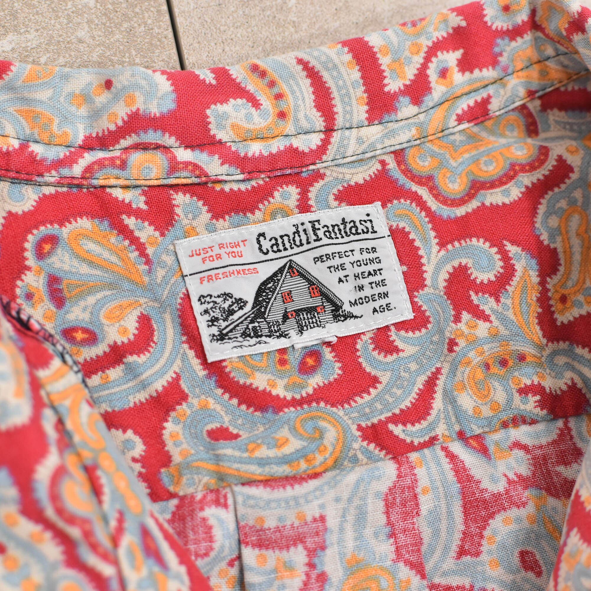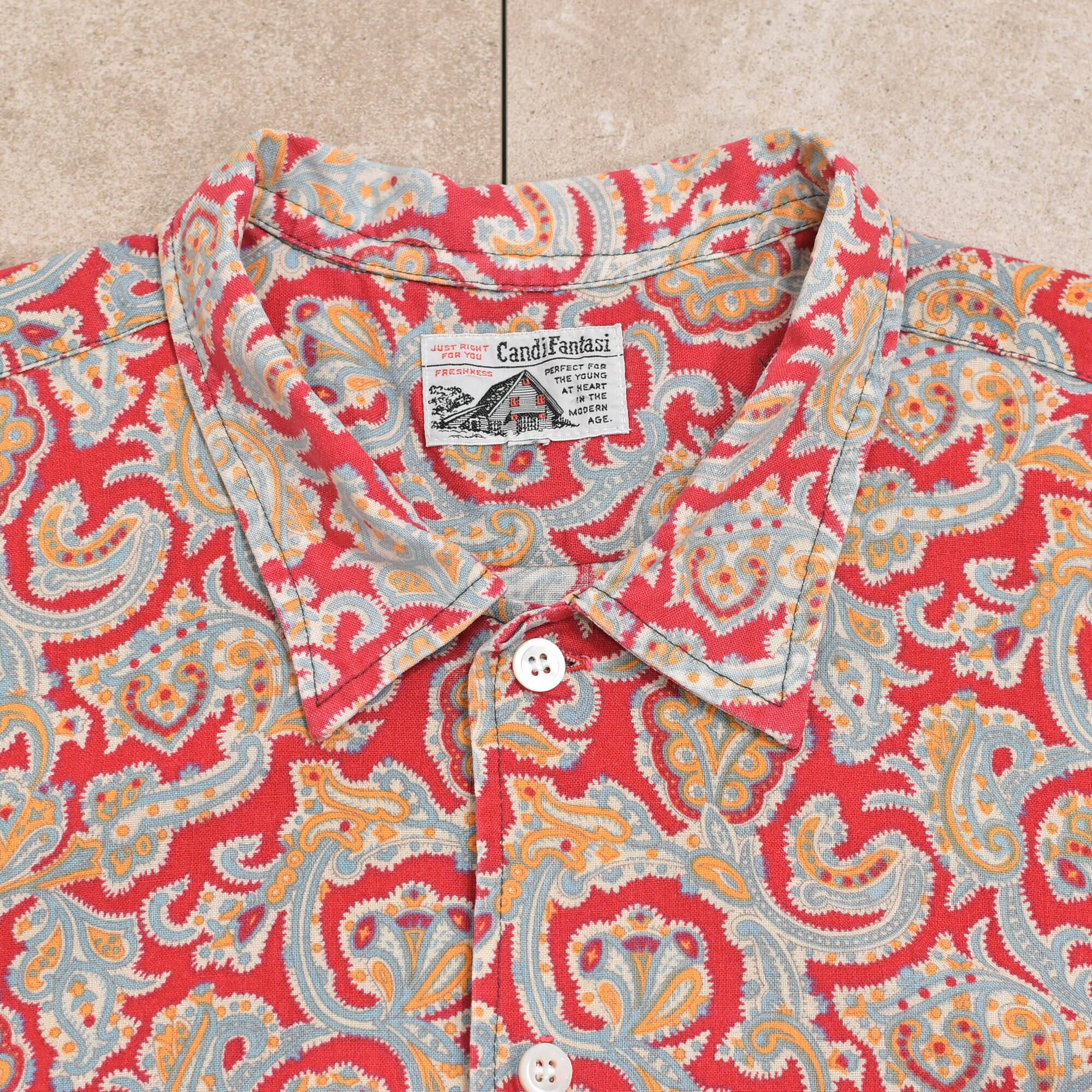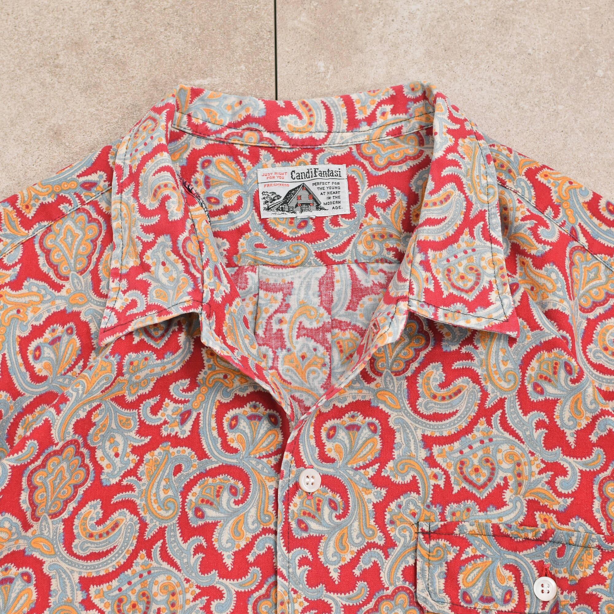 メンズ L相当 90s〜 CandiFantasi ペイズリー柄 総柄 半袖シャツ ヴィンテージ ボタニカル 90s Candi Fantasi paisley pattern SS shirt