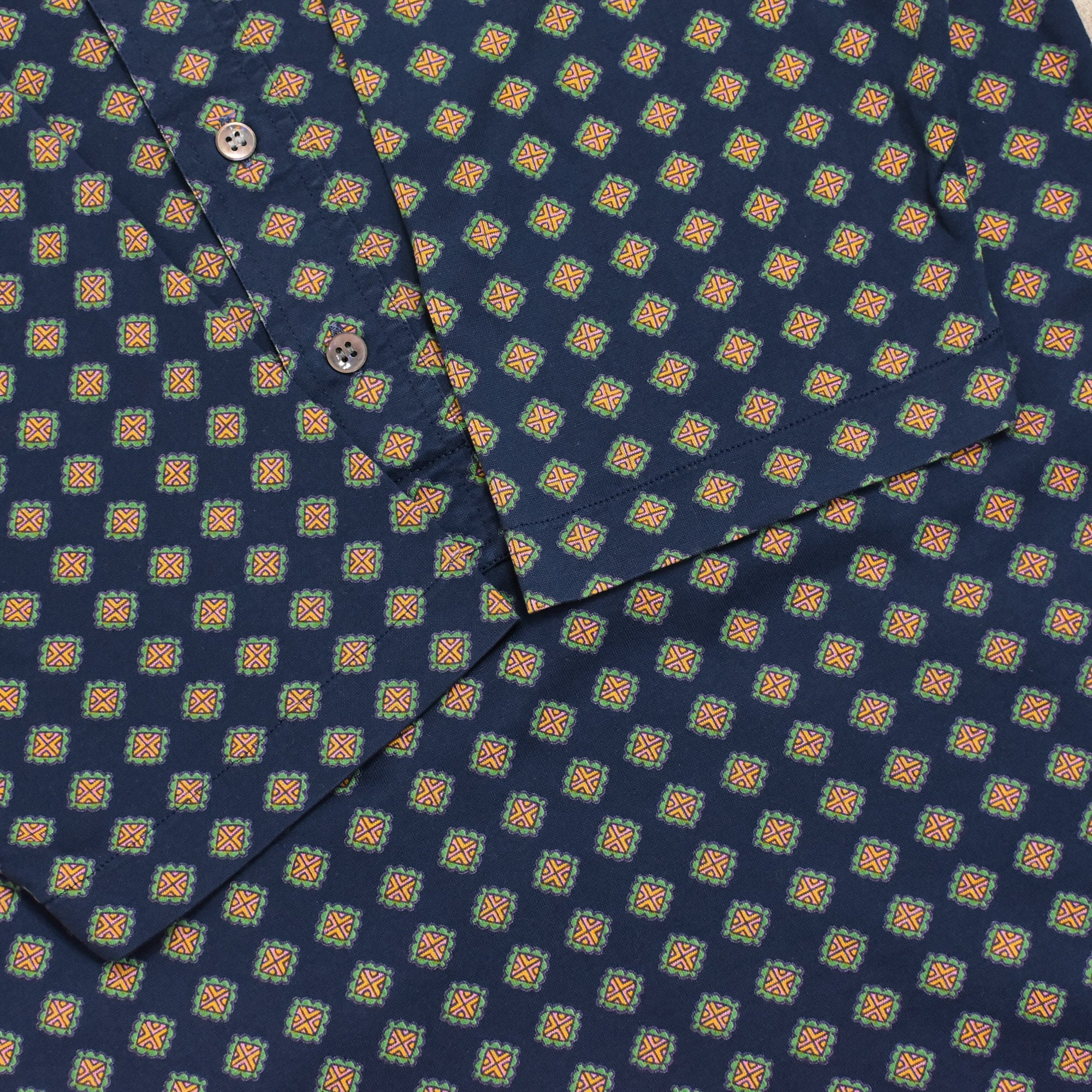素材は、Tシャツでお馴染みのカット生地を使い濃紺カラーに小紋柄、そして襟をあえてドッド柄にする遊び心