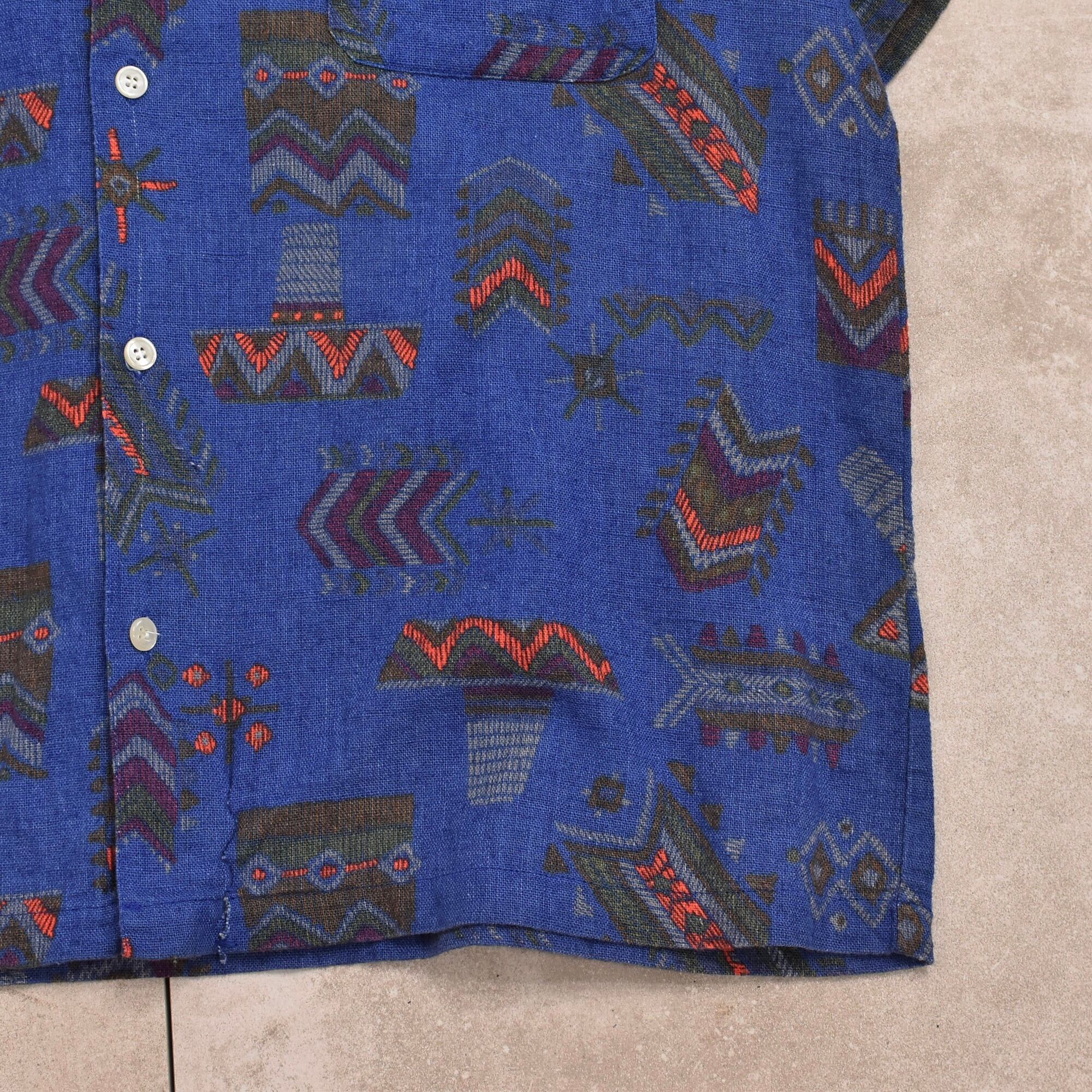 70~80s Native pattern open collar shirt Jp vtg