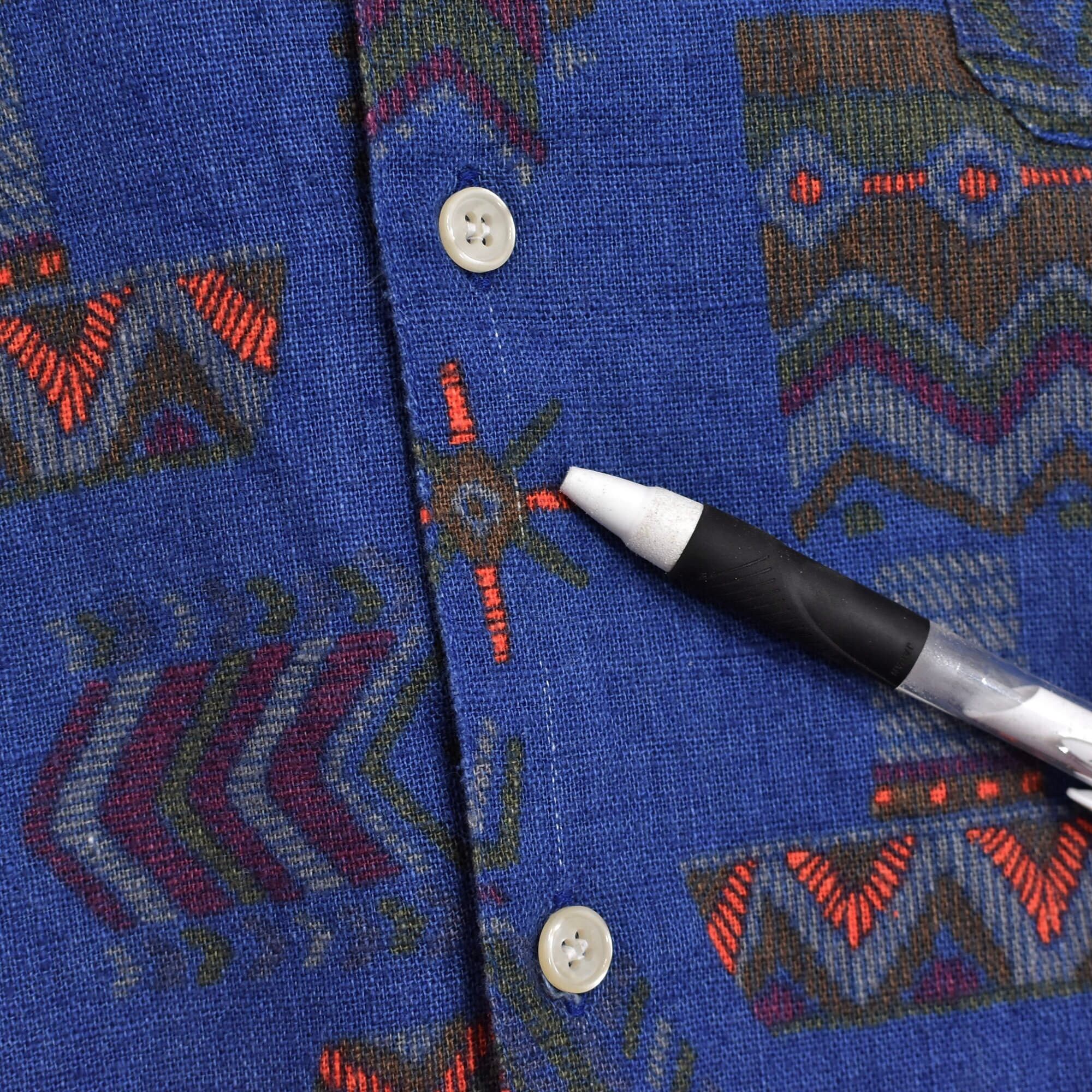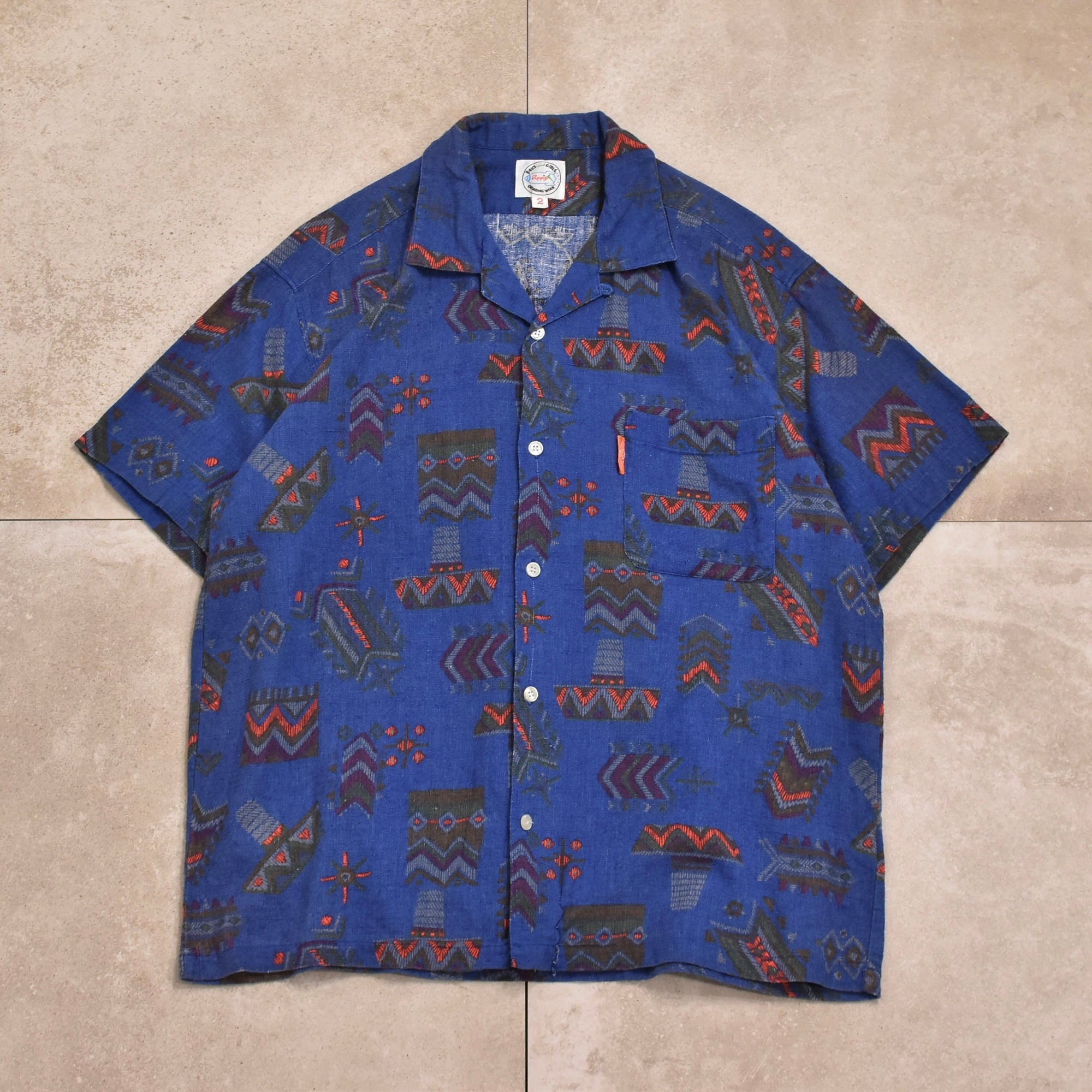 ジグザグ模様や幾何学模様のネイティブなモチーフが散りばめられたヴィンテージ のオープンカラーシャツ