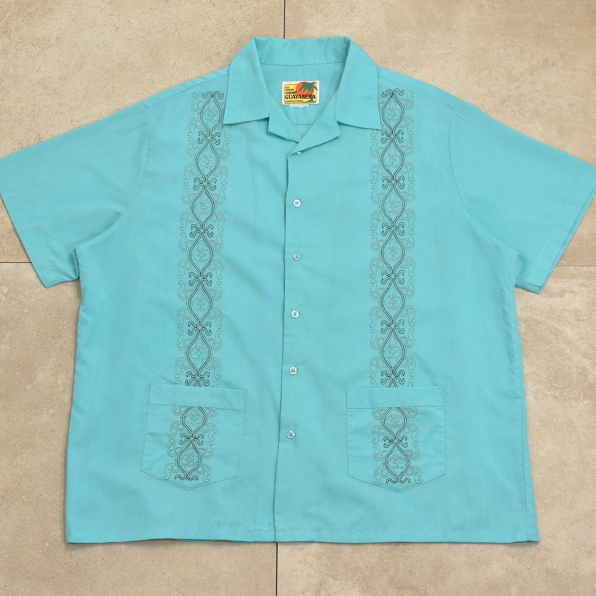 メンズ XL相当 80s〜 HABAND キューバシャツ 半袖 グアヤベラ メキシカンシャツ 開襟 オープンカラー ヴィンテージ 80s〜 HABAND guayabera shirt