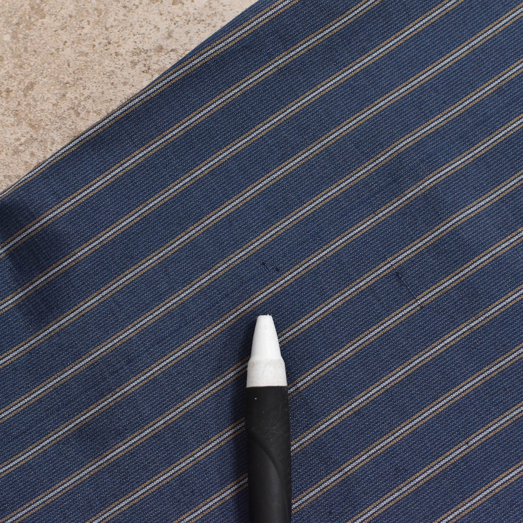深みのある落ち着いたトーンのネイビーをベースに、サラリと肌を滑る素材にストライプをあしらい、可愛らしい犬のキャラクターが刺繍された、ジャンルイフラデの一枚