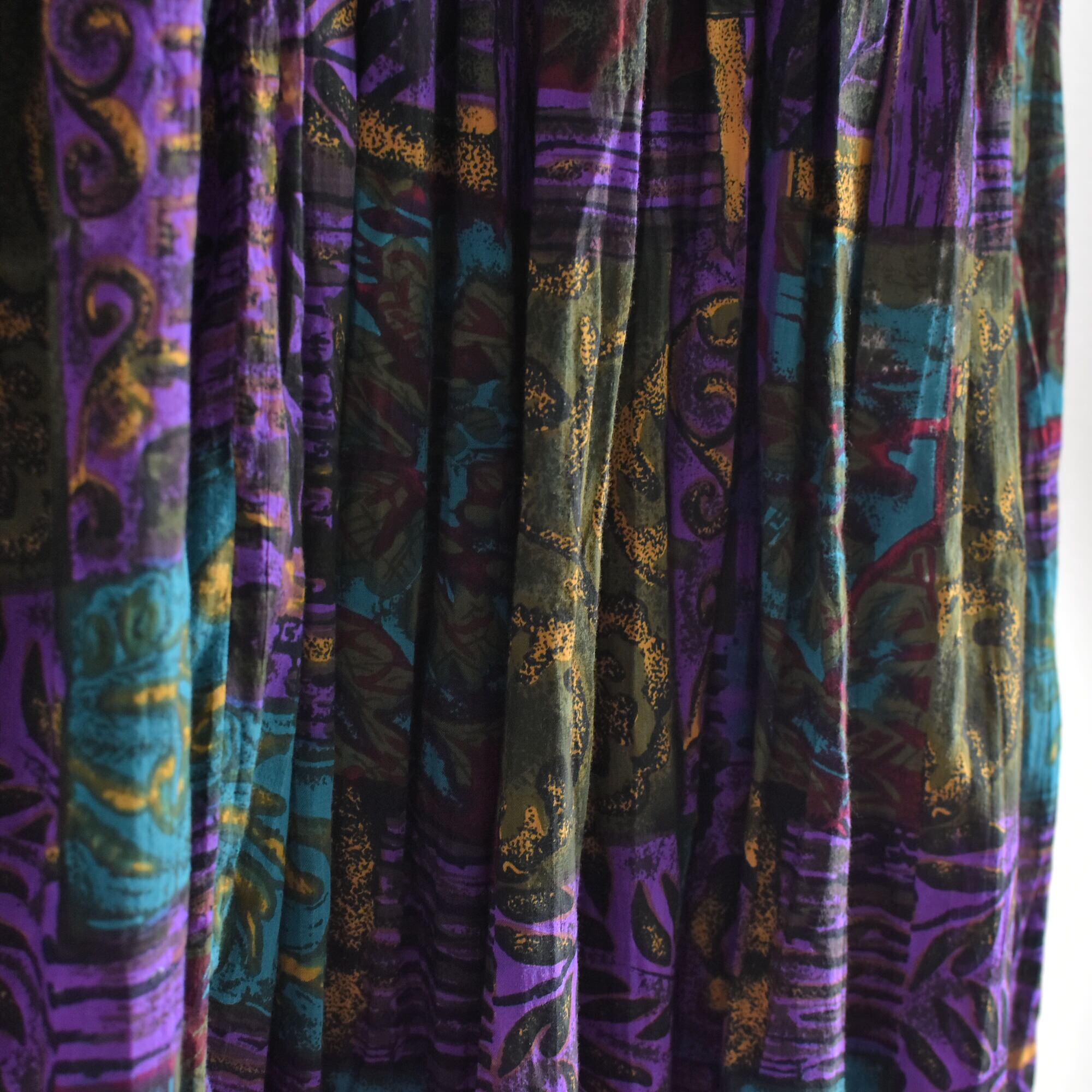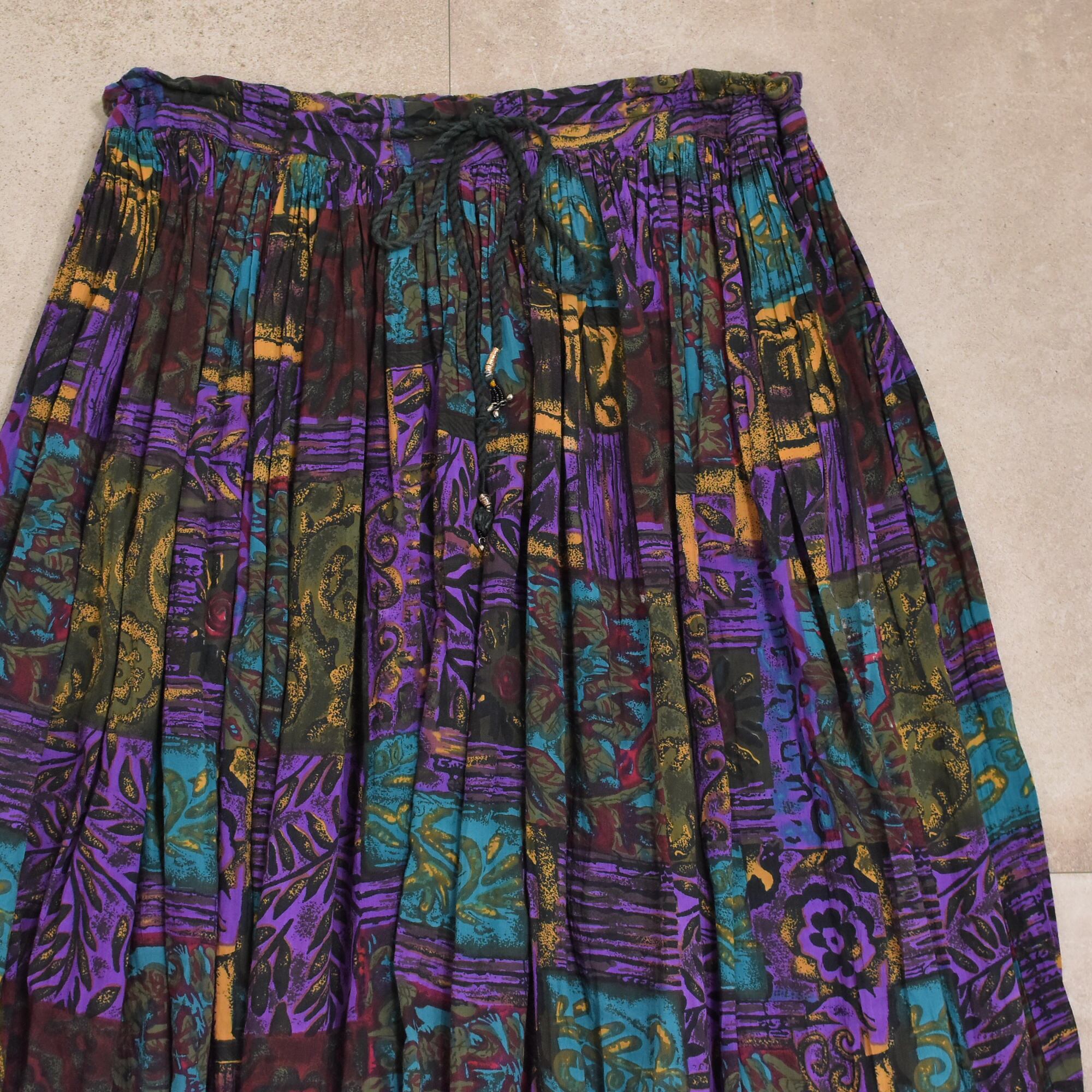 レディース Mサイズ 90s SAG HARBOR サグ・ハーバー ボタニカル パネル柄 インド綿 総柄 スカート ヴィンテージ 90s SAG HARBOR indian cotton botanical pattern cotton skirt