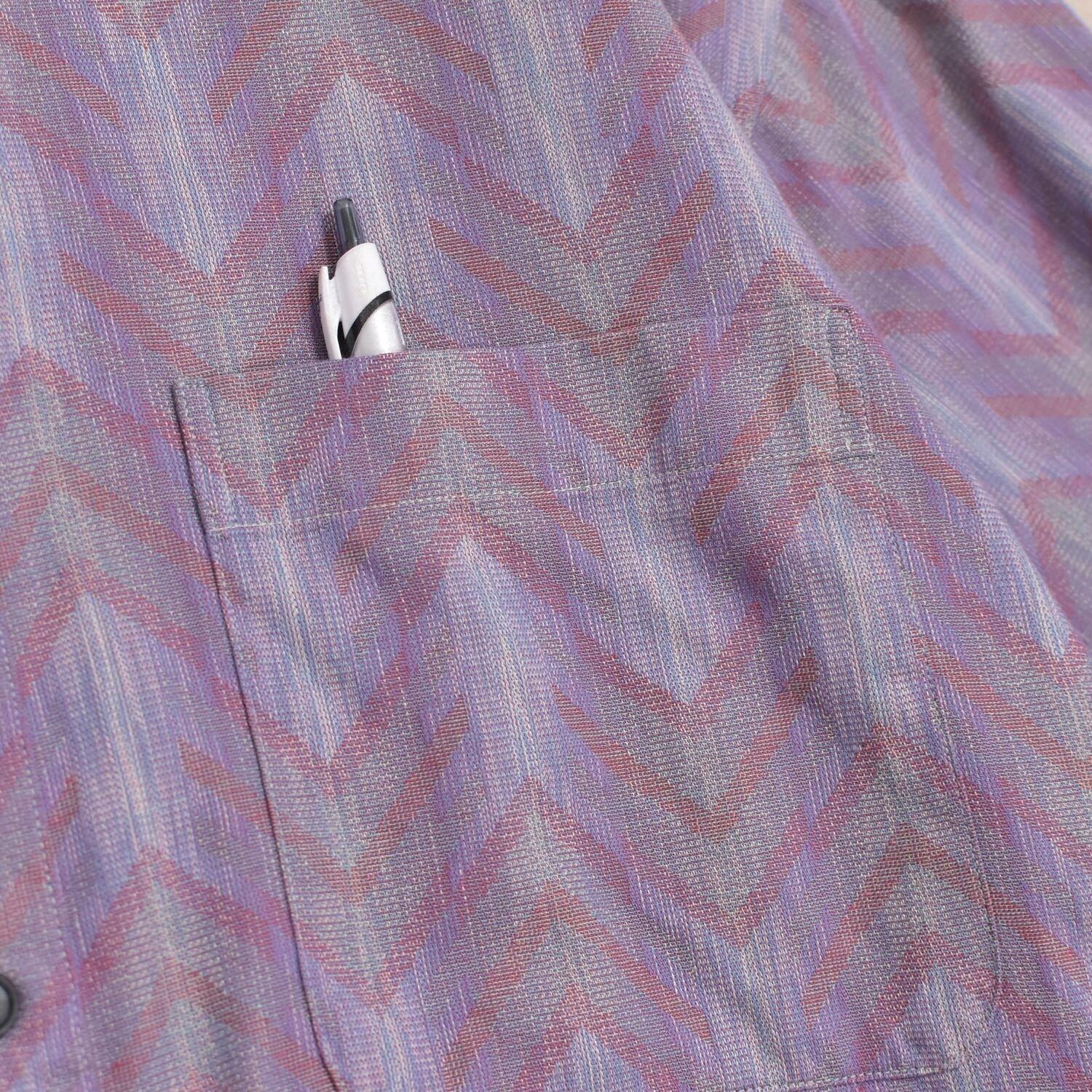 そこに、杉綾の織りを合わせたなんとも言えぬ不思議な趣を楽しませてくれる総柄シャツ