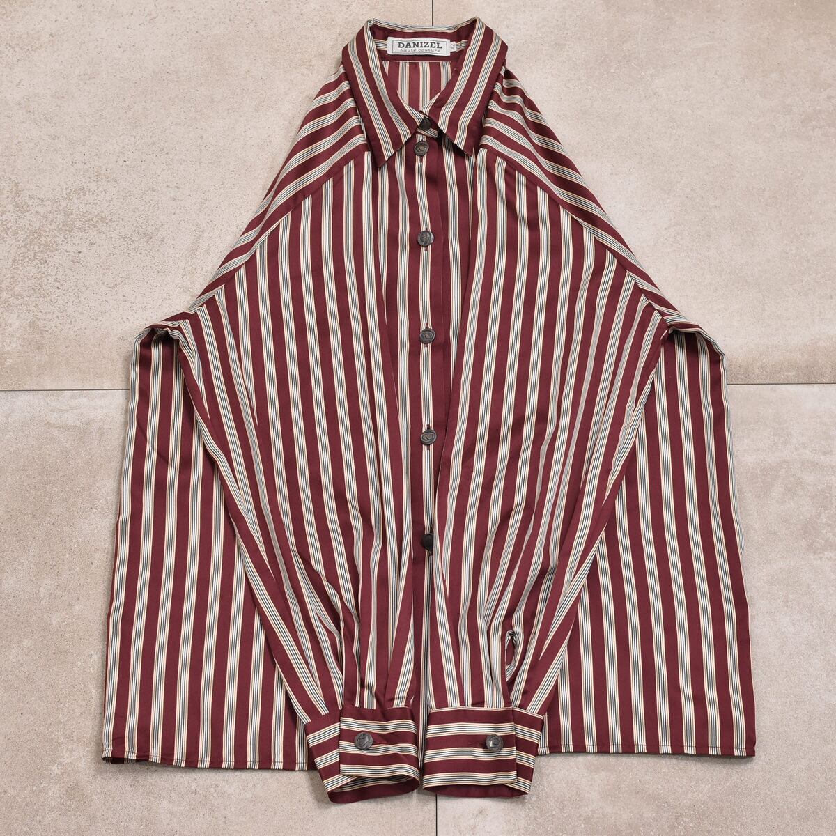 80~90s DANIZEL アニマルボタン ストライプ ポリシャツ ヨーロッパ古着 ヴィンテージ ビンテージ 長袖 オートクチュール レディースL相当