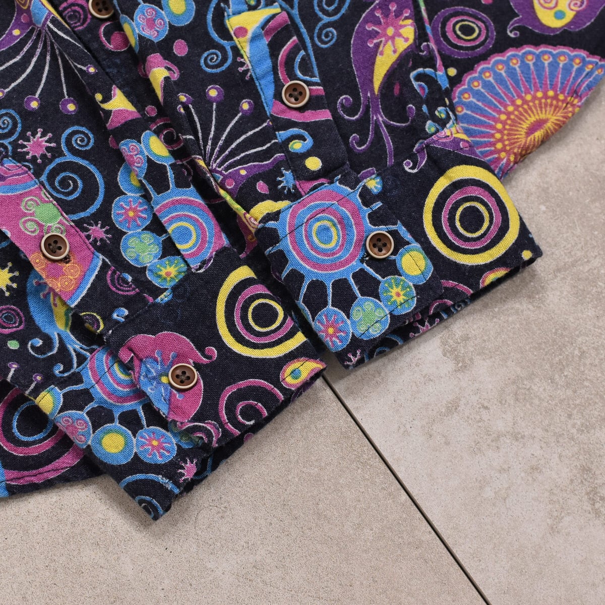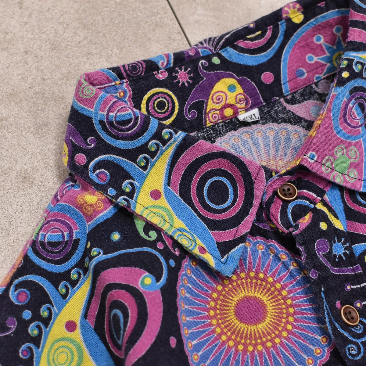 90~00s Unknown サイケデリック柄 アートデザイン コットンシャツ 総柄 ヴィンテージ ビンテージ レディースXXLサイズ