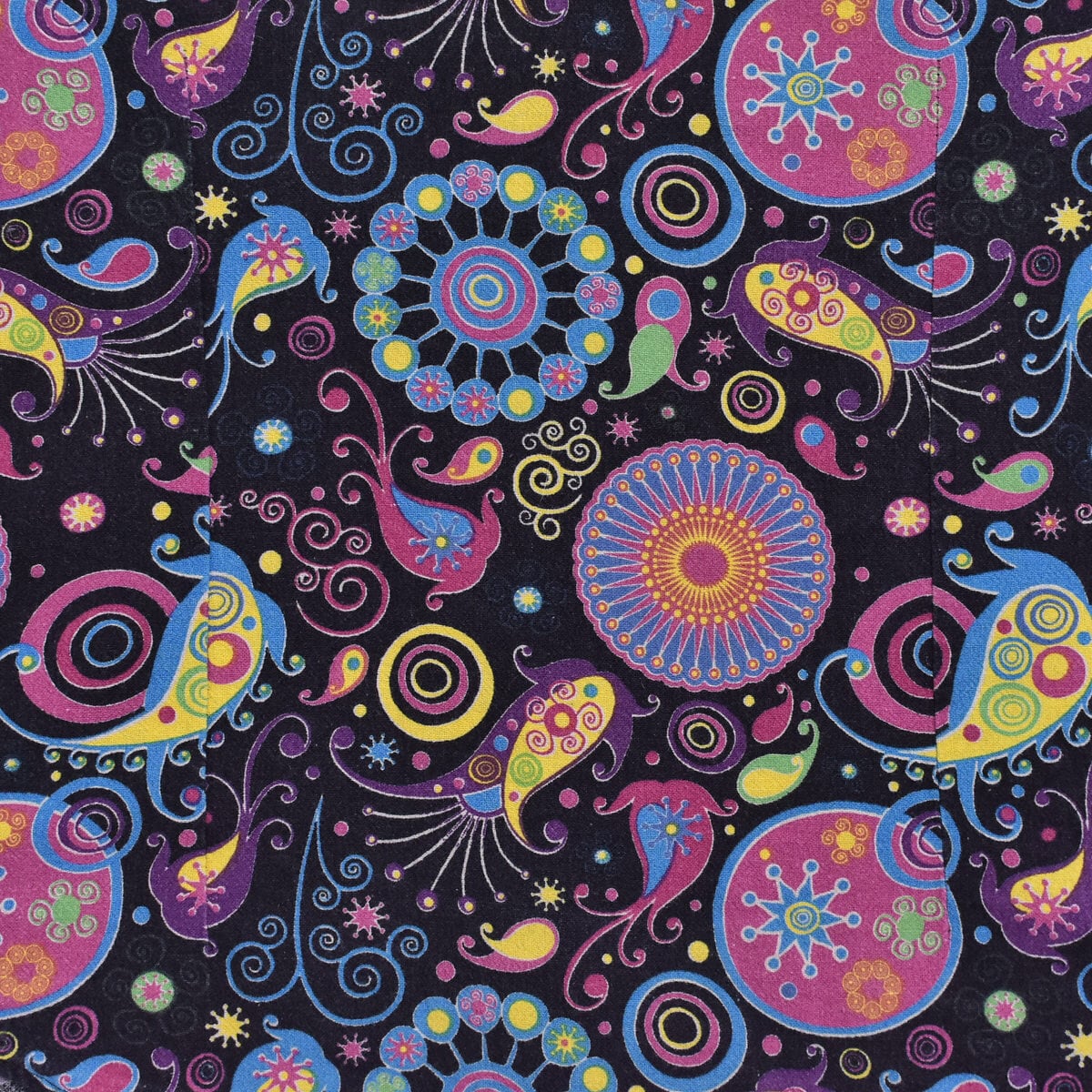 ブラックをベースに極彩色で彩られデザインされた不思議な模様