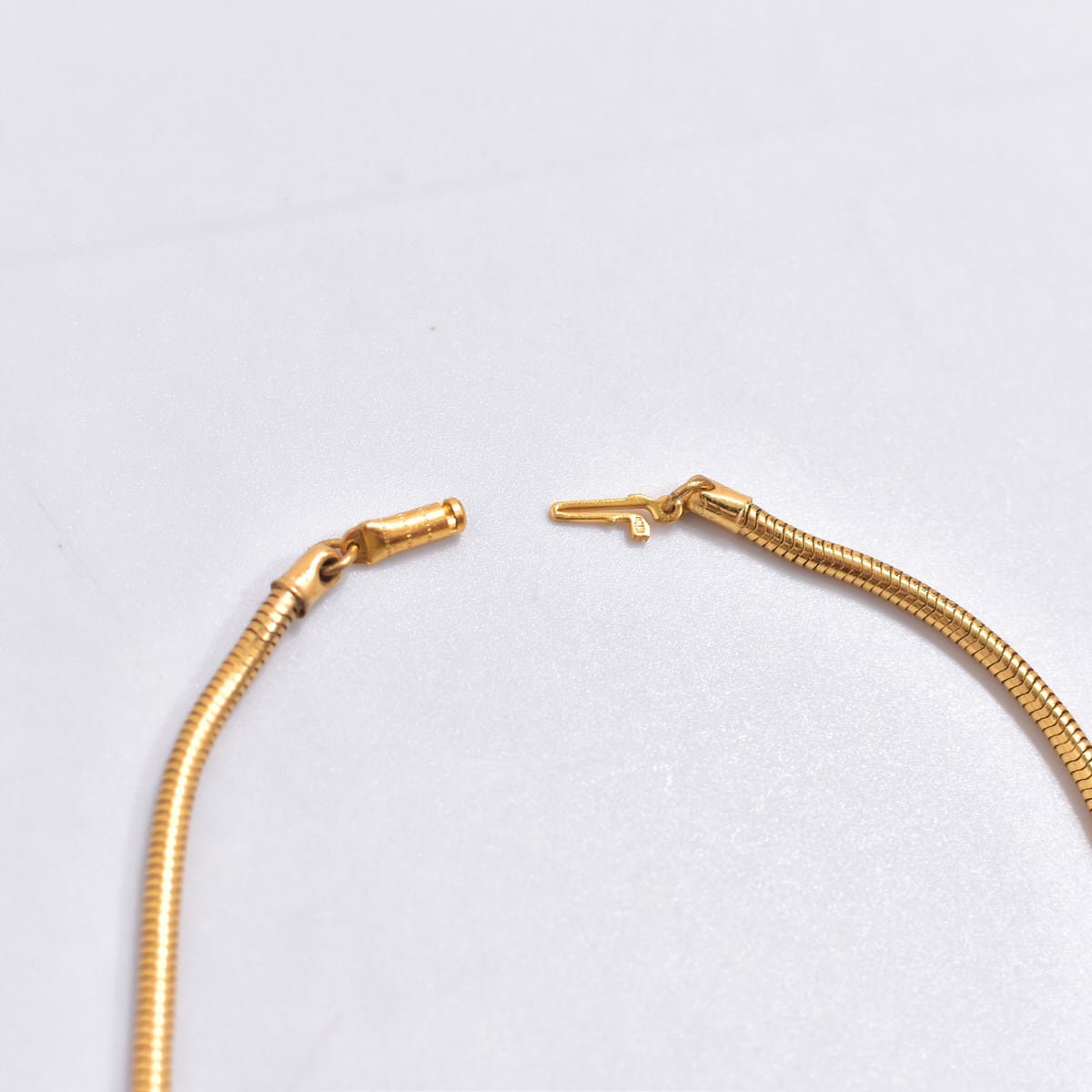 独特な印象を受ける菱形のモチーフをゴールドのチェーンやプレートで繋ぎ合わせたヴィンテージのネックレス