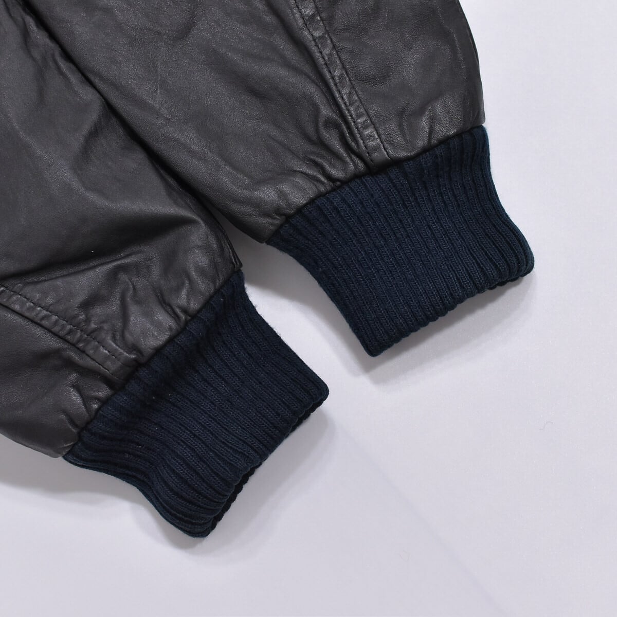 80~90s Vintage ヴィンテージ ブラック レザー シングルジャケット アウター 本革 革ジャン ジャンパー 黒 裏地付き ブルゾン メンズL相当