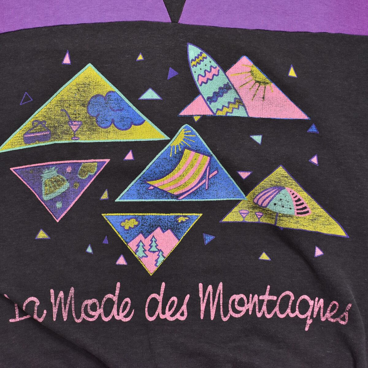 雰囲気系 80~90s La mode des montaqnesフレンチ ヴィンテージ マルチカラー スウェットシャツ ヴィンテージ トレーナー ビンテージ メンズL相当