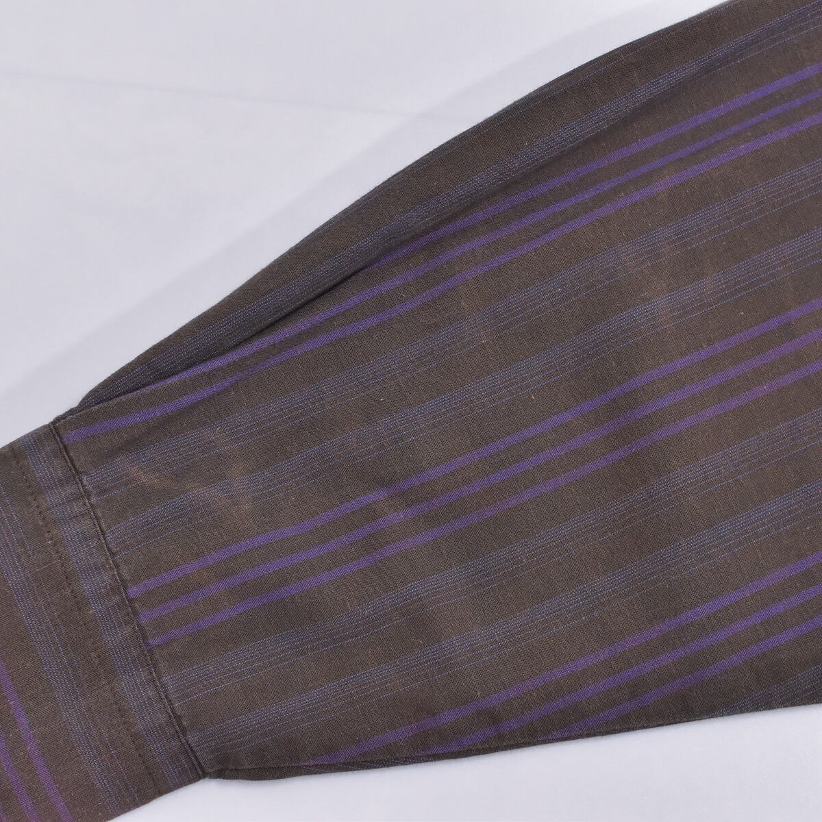 90s〜 INTERMEZZO インターメッツォ マドラス ストライプ スタンドネック シャツ ヴィンテージ 古着 バンドカラー ビンテージ メンズLLサイズ