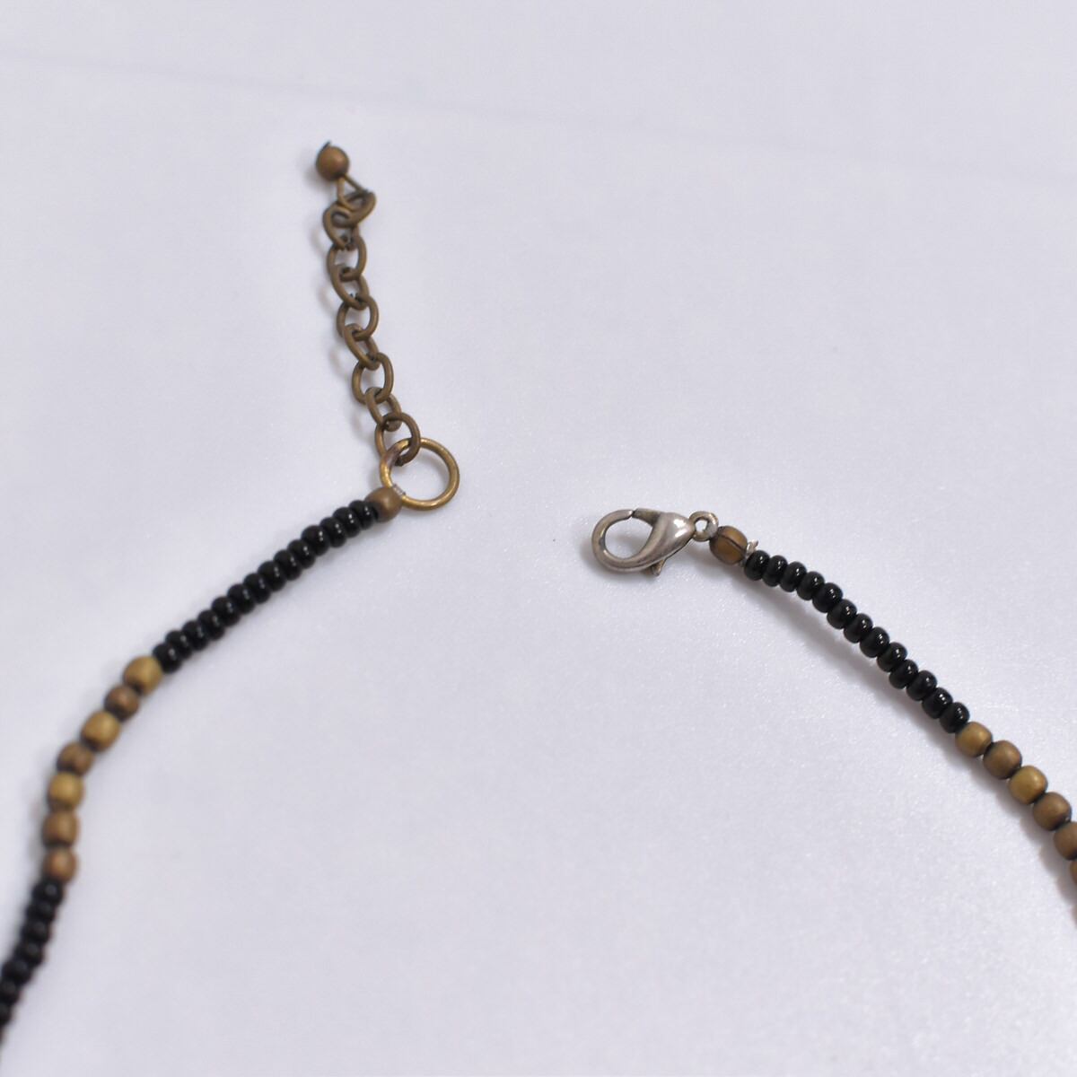 ブラックビーズをベースにくすみゴールドのアンティークな雰囲気がエスニックな趣を感じさせてくれる一本
