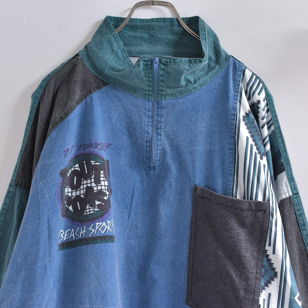 80〜90s LE FROG ネイティブ柄 ハーフジップ コットン プルオーバージャケット ヴィンテージ アウター ビンテージ メンズXXL〜相当