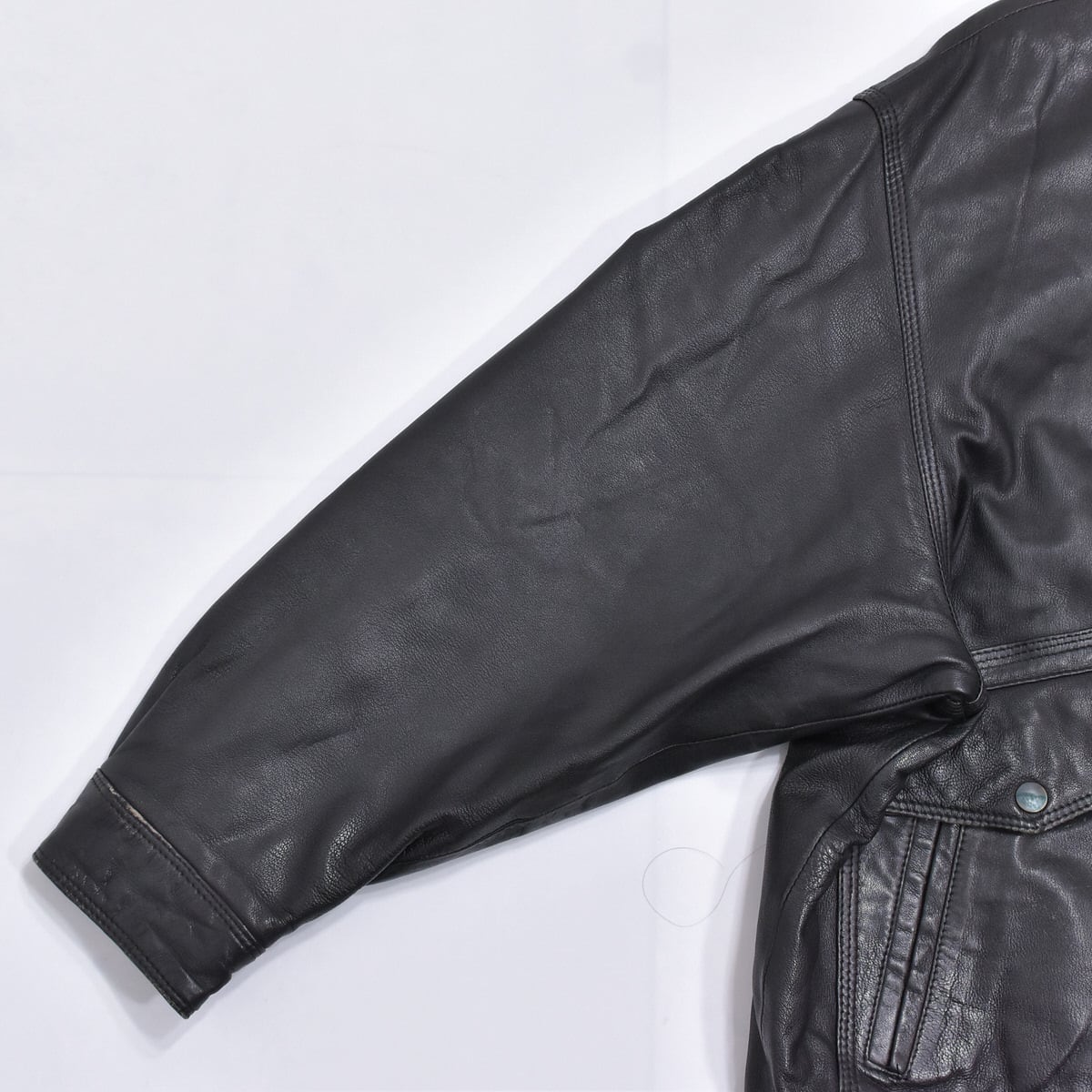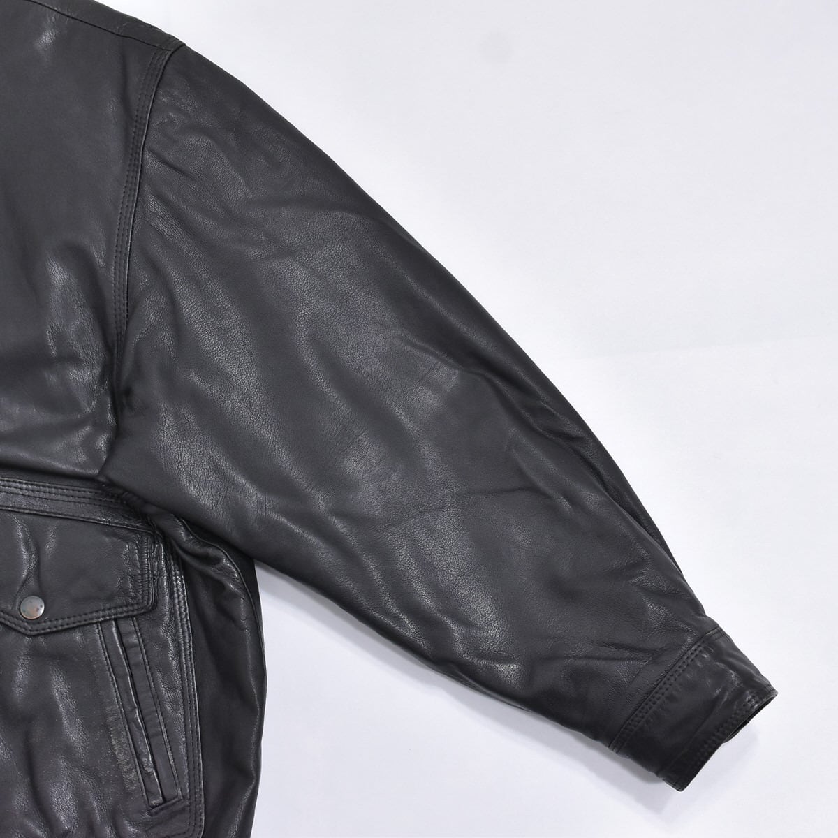 80~90s KAKUISHI Co.,Ltd ブラックレザー ブルゾン 本革 ジャンパー 古着 革ジャン ヴィンテージ メンズ L相当