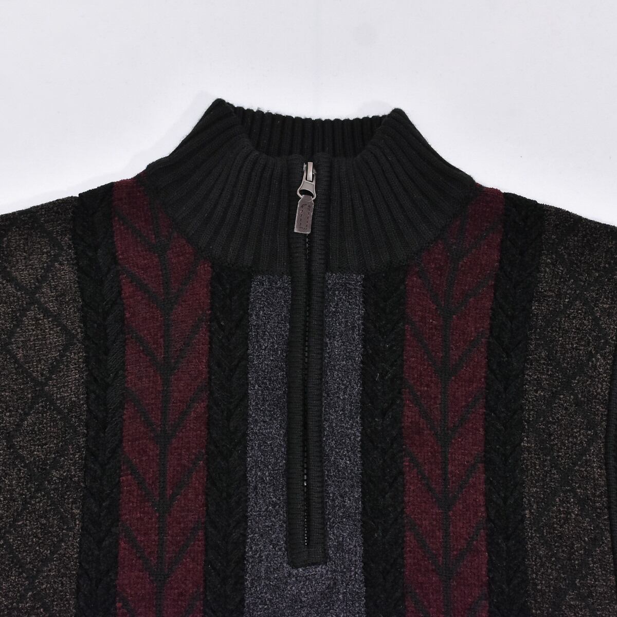 Patrizio Francesca ジャガード 切替デザイン モールヤーン ハーフジップ プルオーバーニット セーター ヴィンテージ ビンテージ メンズLサイズ