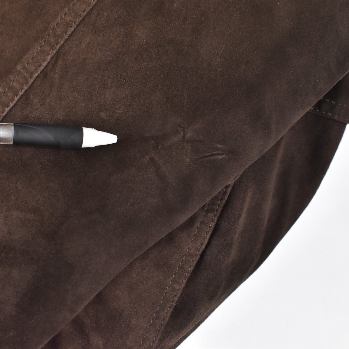 ラムレザーよりも柔らかく、しなやかなゴートスキンレザーを使い、スウェードに起毛させベロアの様ななめらかな肌触りを表現した一着