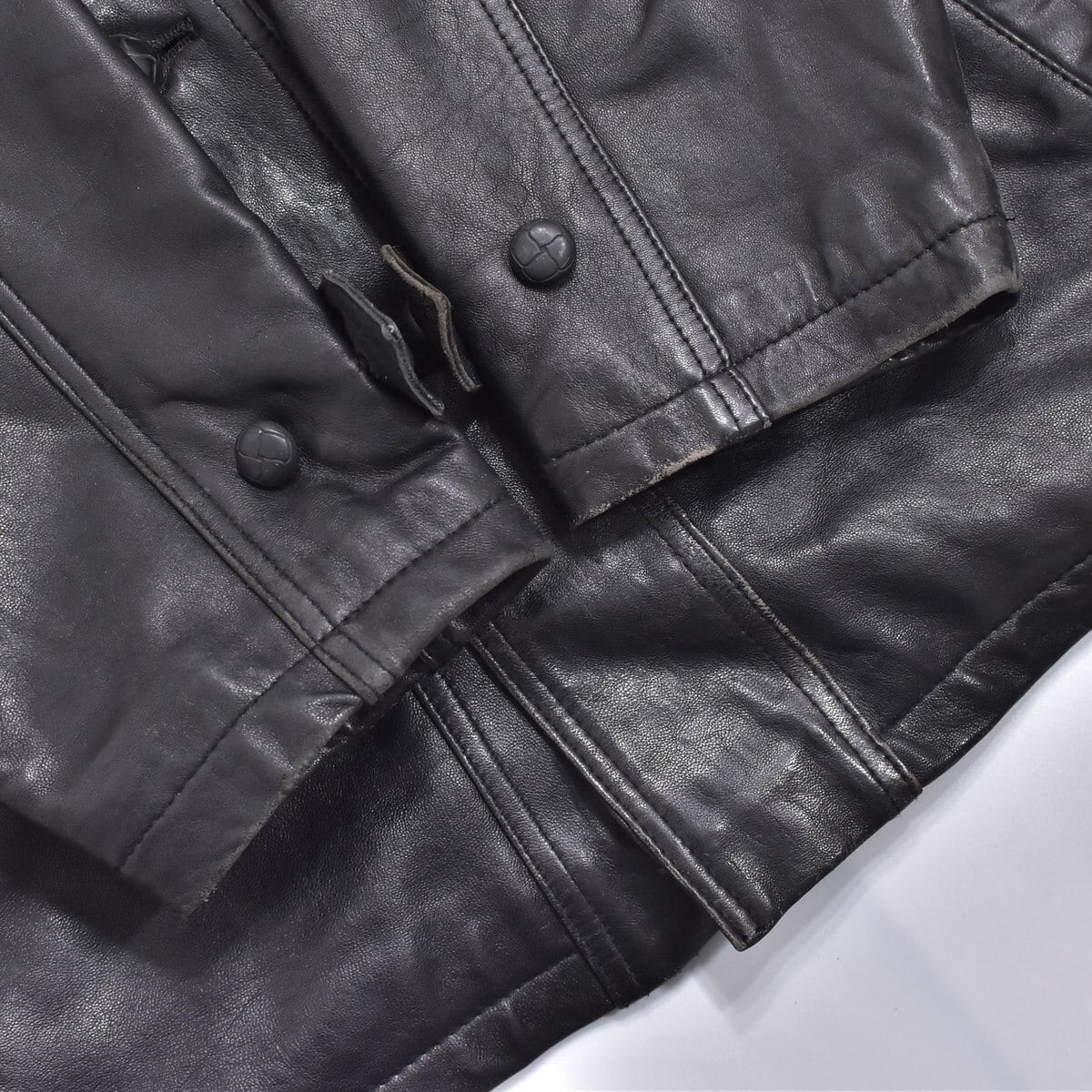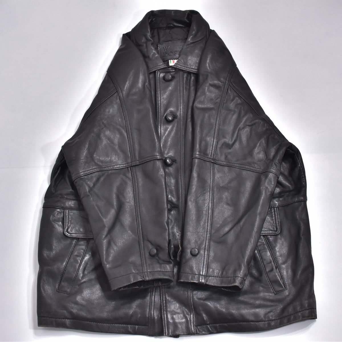 90s W DOPIO イタリアン ブラック ラムレザー ハーフコート 本革 ジャパン ヴィンテージ 革ジャン ビンテージ 羊革 裏地付き メンズLサイズ