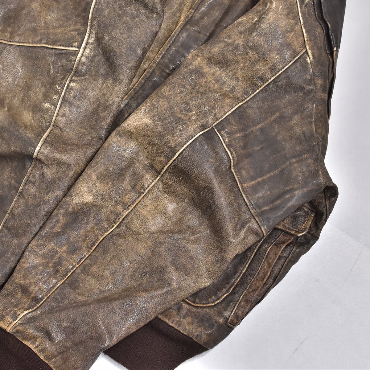 80s アメリカ製 cLub ELiTE A-2タイプ エイジング レザージャケット ヴィンテージ フライトジャケット 本革 ビンテージ メンズXL相当