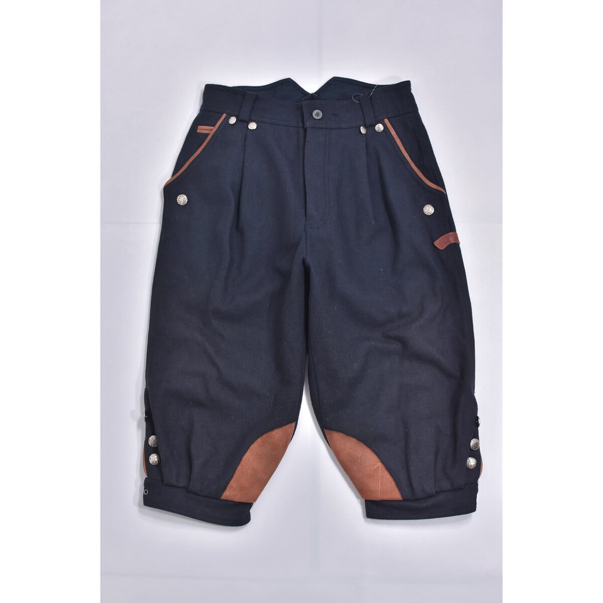 目の詰まった深みのあるネイビーをベースに、ブラウンのパイピングや切替デザインやメタルボタンのアクセント