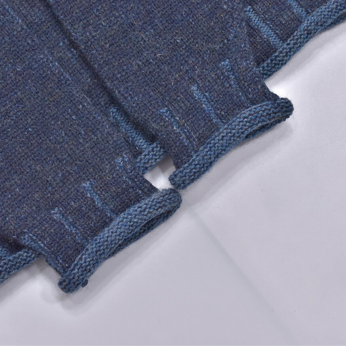 ロールネック調のデザインや、袖や裾にも同様にあしらわれたデザインは、北欧を代表するアランニットやノルディックニットとはまた違った雰囲気ですね