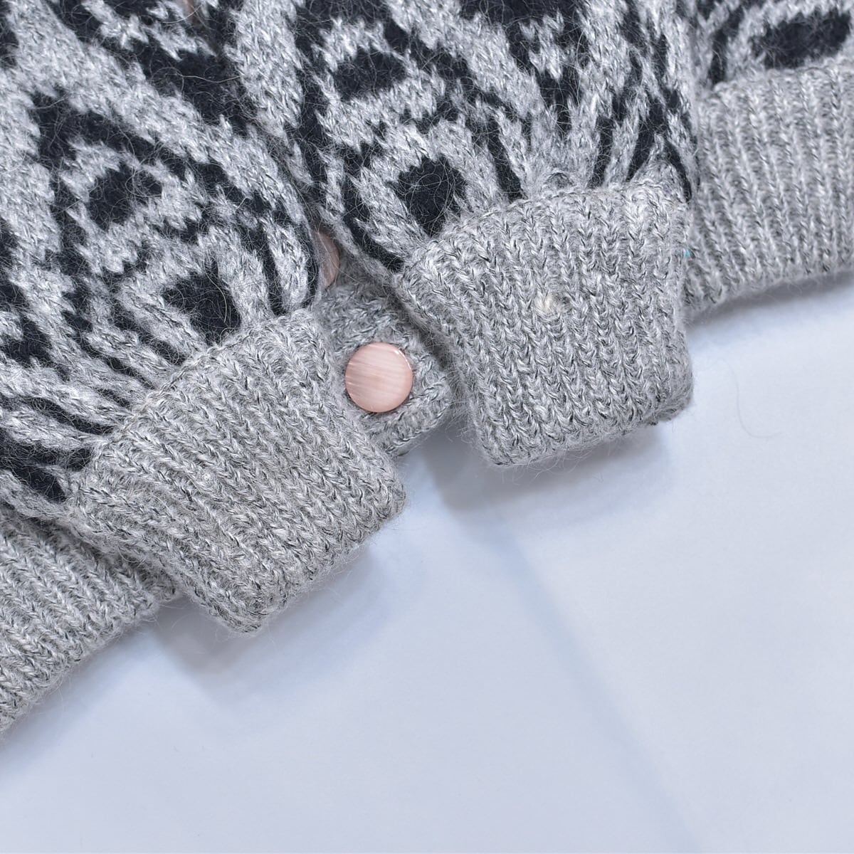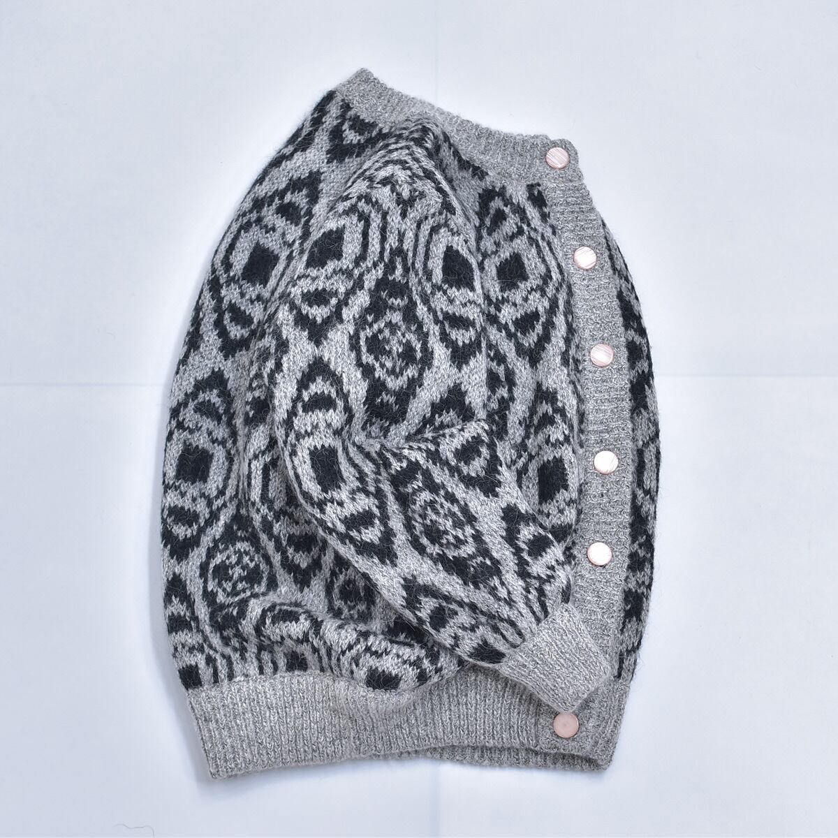 80~90s FUXD ダマスク模様 ジャガードデザイン ニット カーディガン ジャパンヴィンテージ 裏地付き モザイク柄 レディースL相当