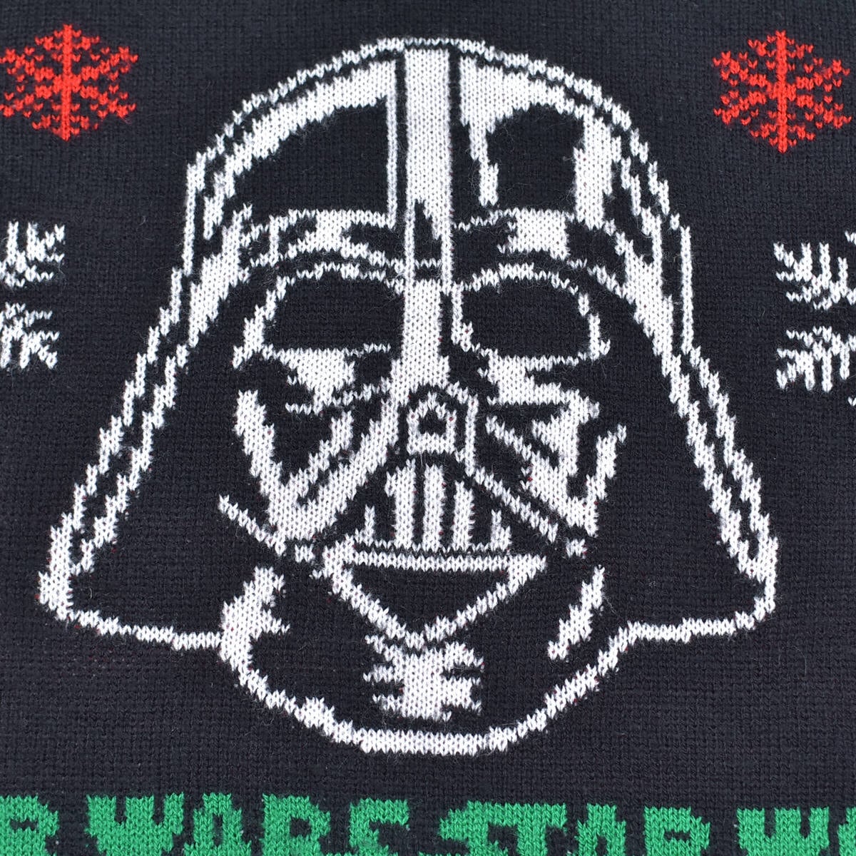 STARWARSのキャラクター、ダース・ベイダーやストームトルーパー、AT-AT ウォーカーがジャガードデザインされたクリスマスセーター