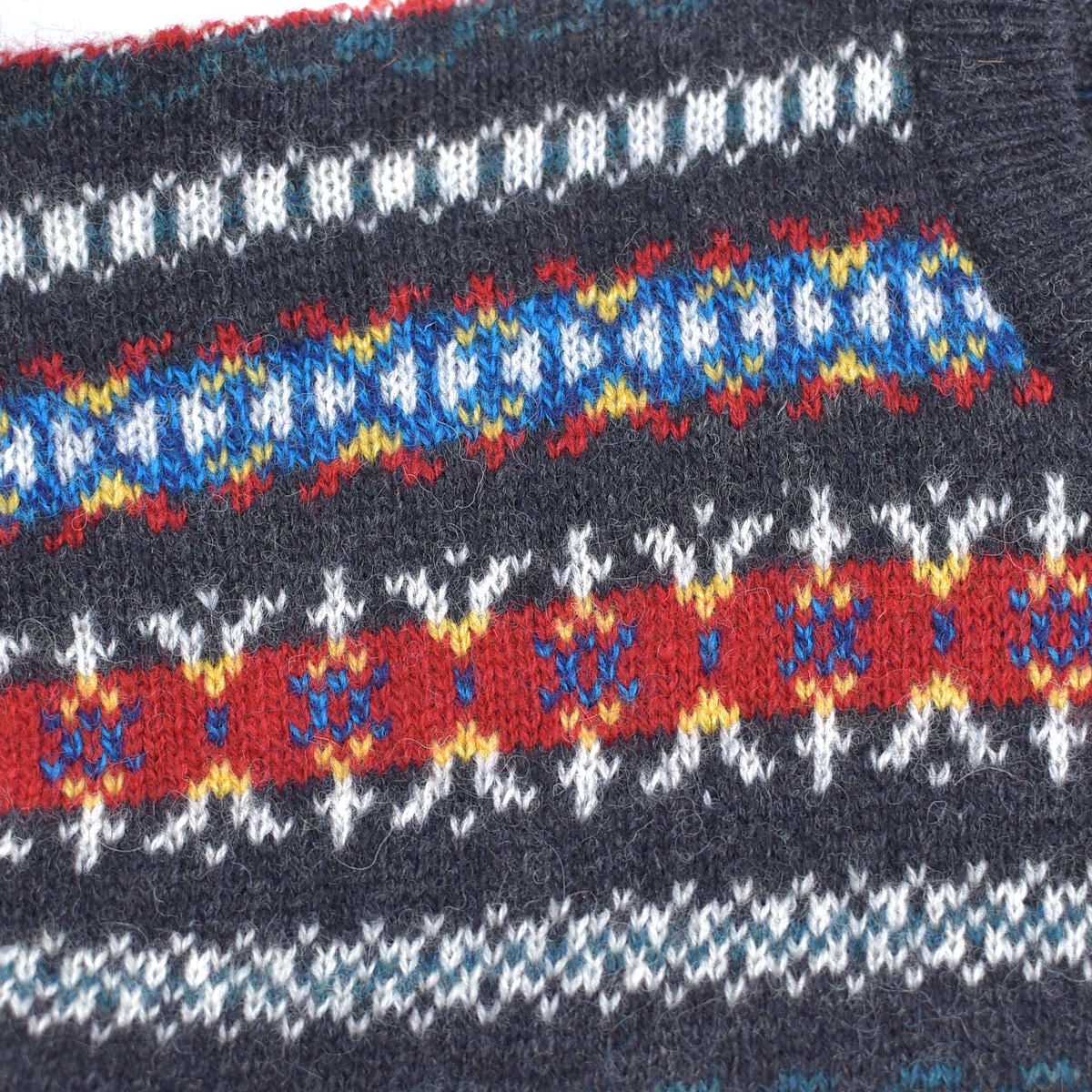 ハリスツィードの産地でも有名な世界でも有数の羊毛の産地で知られるイギリス、スコットランドで作られたフェア・アイル柄のプルオーバーニット