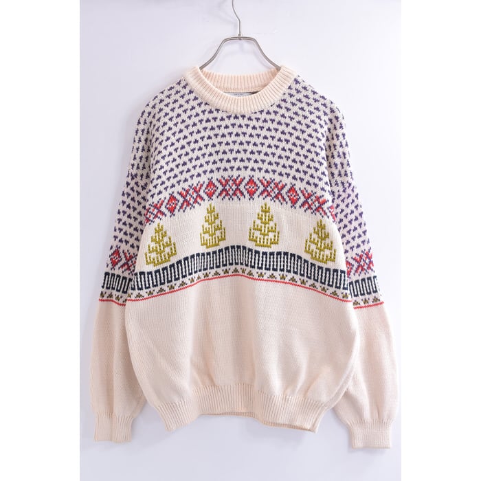 90s イタリア製 UCOB ユナイテッド・カラーズ・オブ・ベネトン ノルディック柄 コットンニット セーター ヴィンテージ ビンテージ メンズL相当