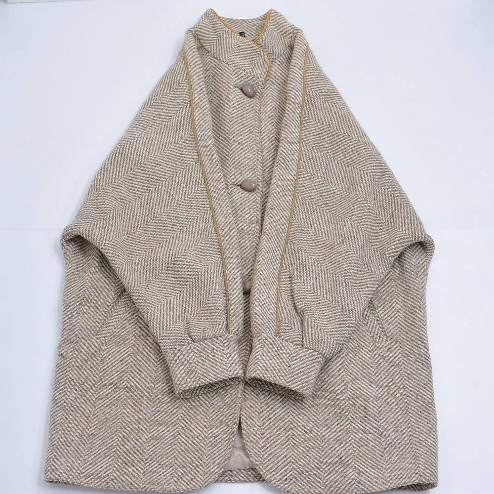 60〜70s Eur Vintage 西ドイツ製 ヘリンボーン ツィード ネップウール デザインコート ヴィンテージ ヨーロッパ古着 ビンテージ レディースL〜XL相当
