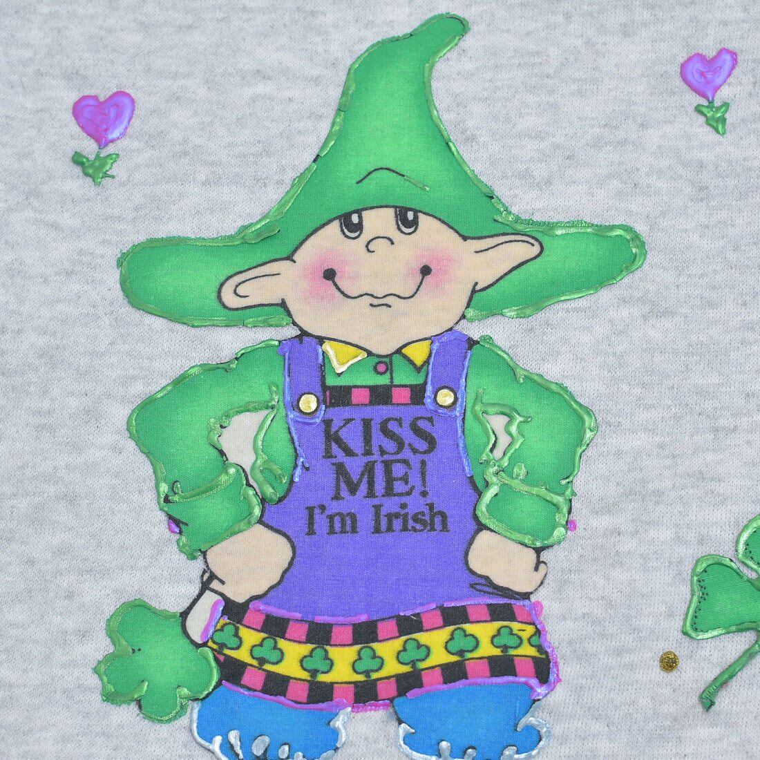 90s アメリカ製 Hanes ヘインズ ケルト妖精 アップリケ&ペイント デザイン スウェットシャツ ヴィンテージ トレーナー 裏起毛 ビンテージ 古着 メンズXLサイズ