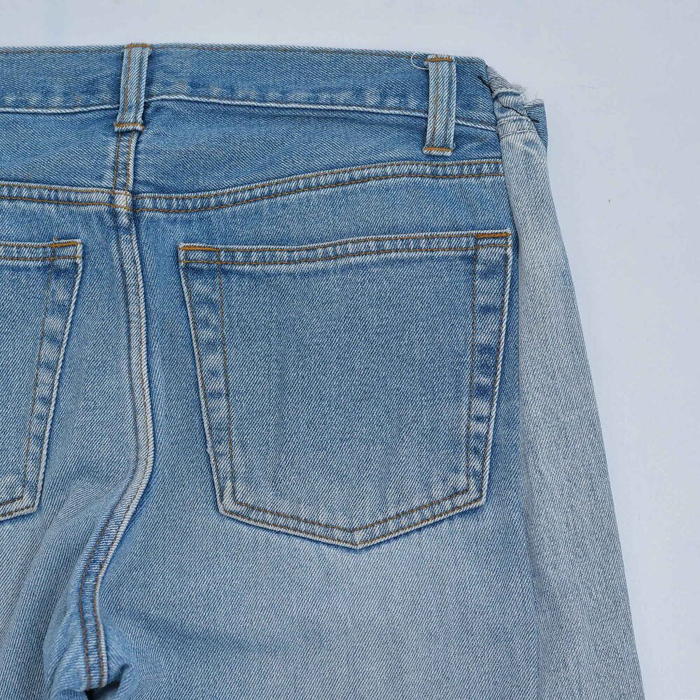 2本のデニムを解体、カット、そして再び繋ぎ合わせた再構築のデニムパンツ