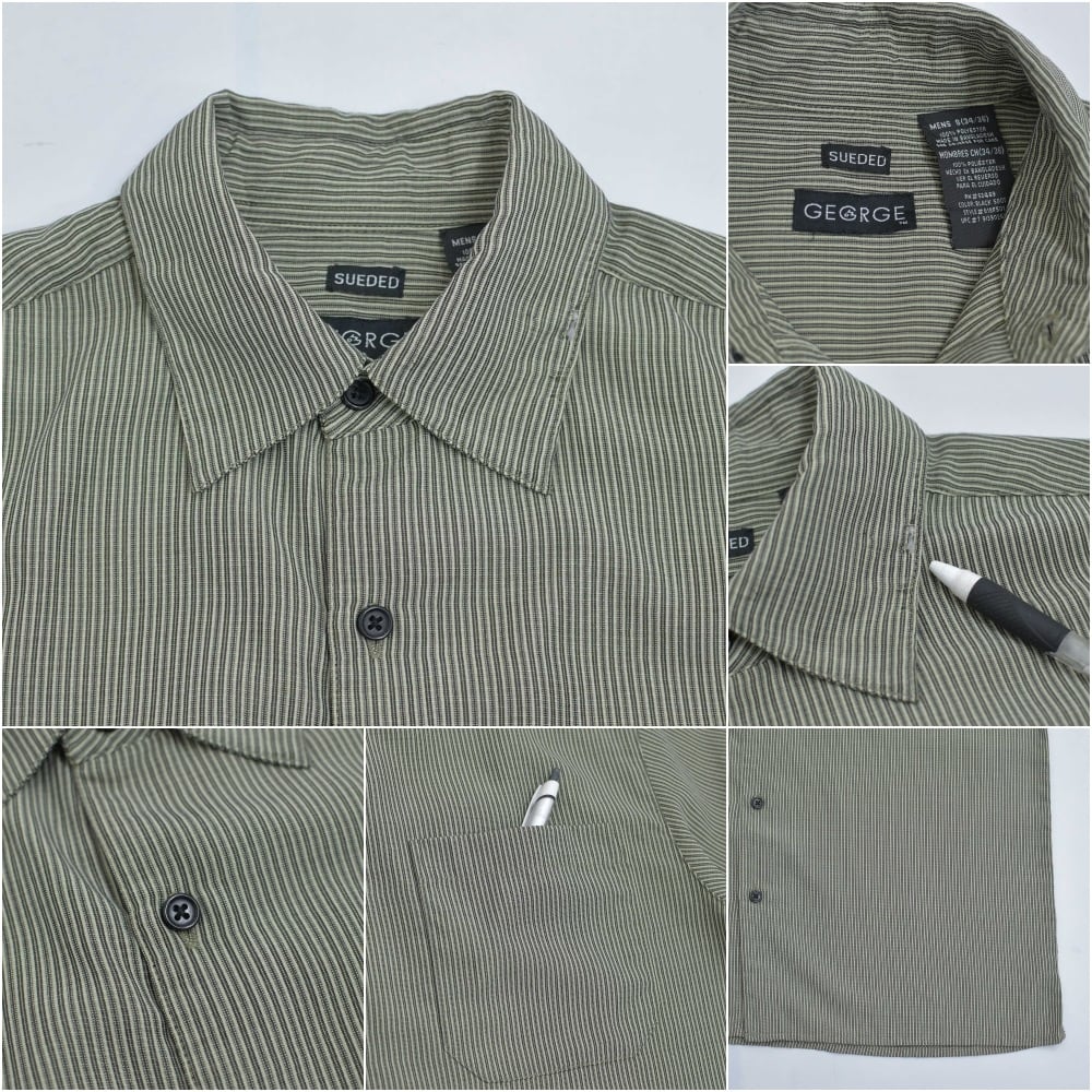 90~00s GEORGE SUEDED ストライプ パターン ポリエステルシャツ ヴィンテージ 半袖 ピーチスキン ビンテージ USA アメリカ古着 メンズM相当